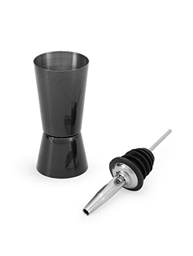 King International 100% Stainless Steel Black Coloured Jigger 4.4 cm and Bottle Stopper 2.5 cm Bar SetBar ToolsBar Accessories of 2 Pieces