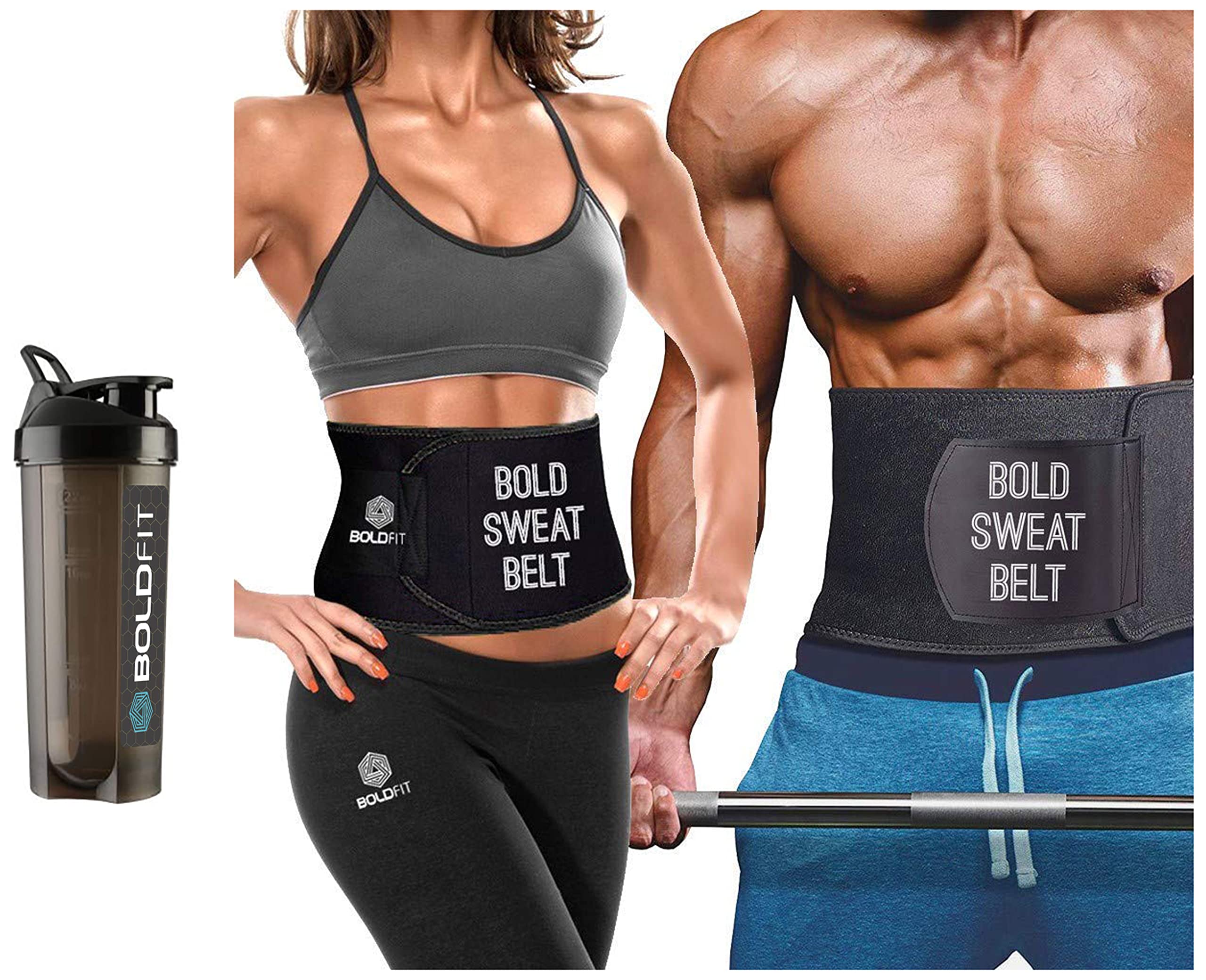 2 SIZES NOW AVAILABLE - BOLD SWEAT WAIST SUPPORT BELT FOR MEN AND WOMEN is designed to protect the lower back muscles and abdomen from strain and fatigue during a workout The Medium Size will fit up to a 43â waist. The Large Size has an extra wide desig