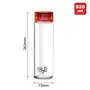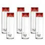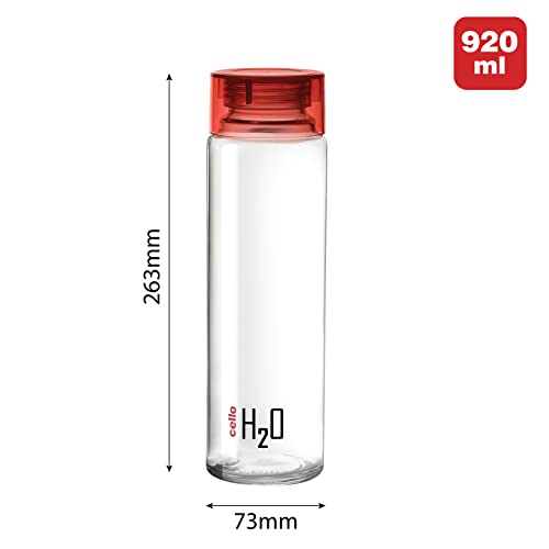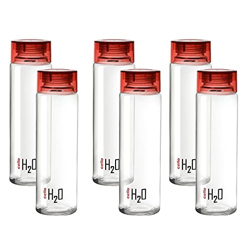 CELLO H2O Glass Fridge Water Bottle with Plastic Cap | Leak proof & break-proof | Wide mouth & Easy to Clean | Best Usage for Office/School/College | Set of 6, 920ml | Red