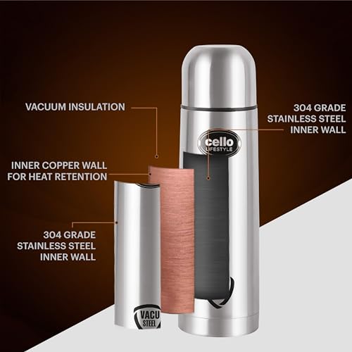 MATERIAL: Cello uses 18/8 high grade premium quality stainless steel and it has a 'Thermoseal' layer with copper coating to give you one of the best performances for heat retention.