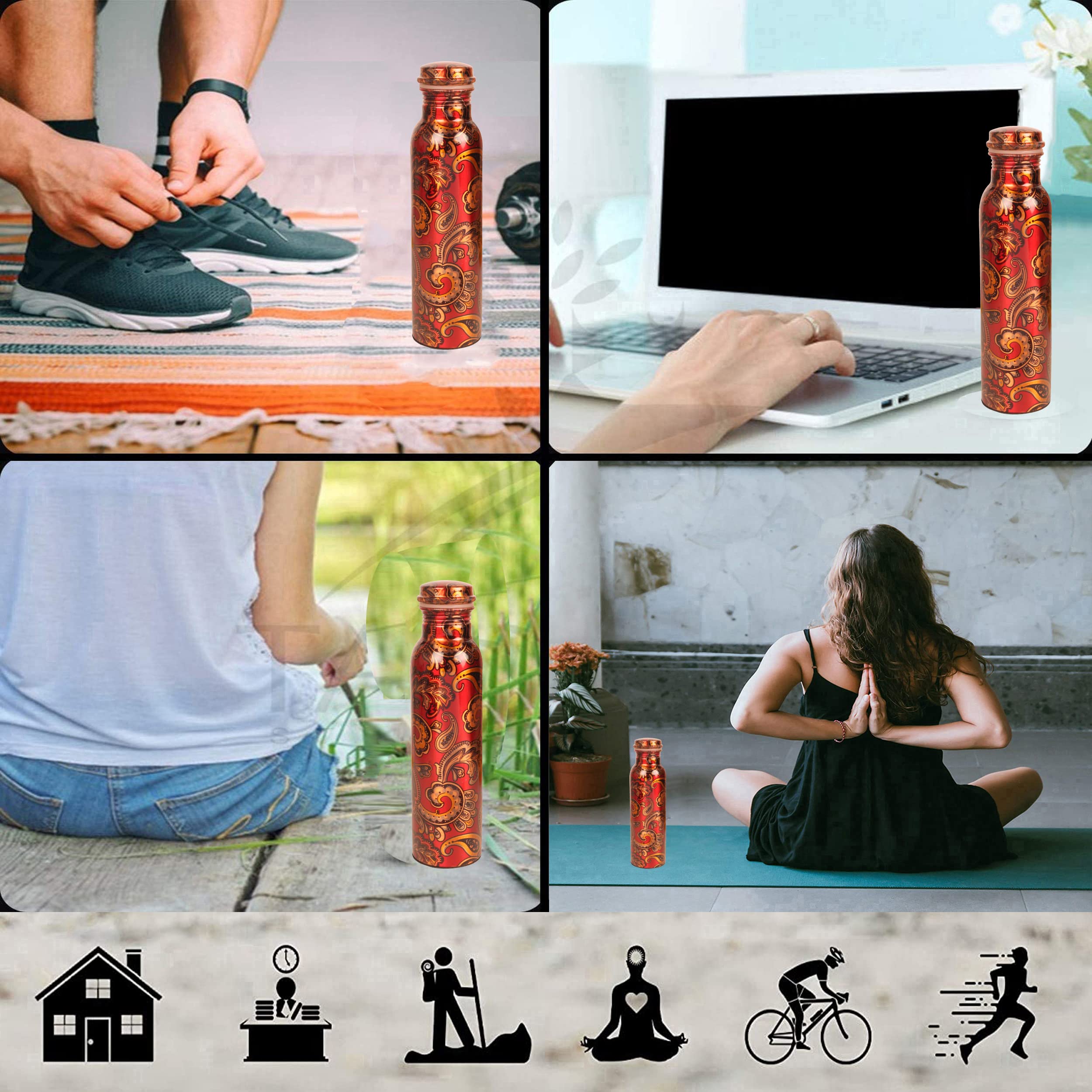 HomeKitchenContainersBottlesINDTRESOR Pure Copper Water Bottle -Handcrafted -Ayurveda Health Benefits -Large 1000 ml - Leak proof - Easy to carry for Sports Fitness Yoga School - Textured Antique Look Floral.