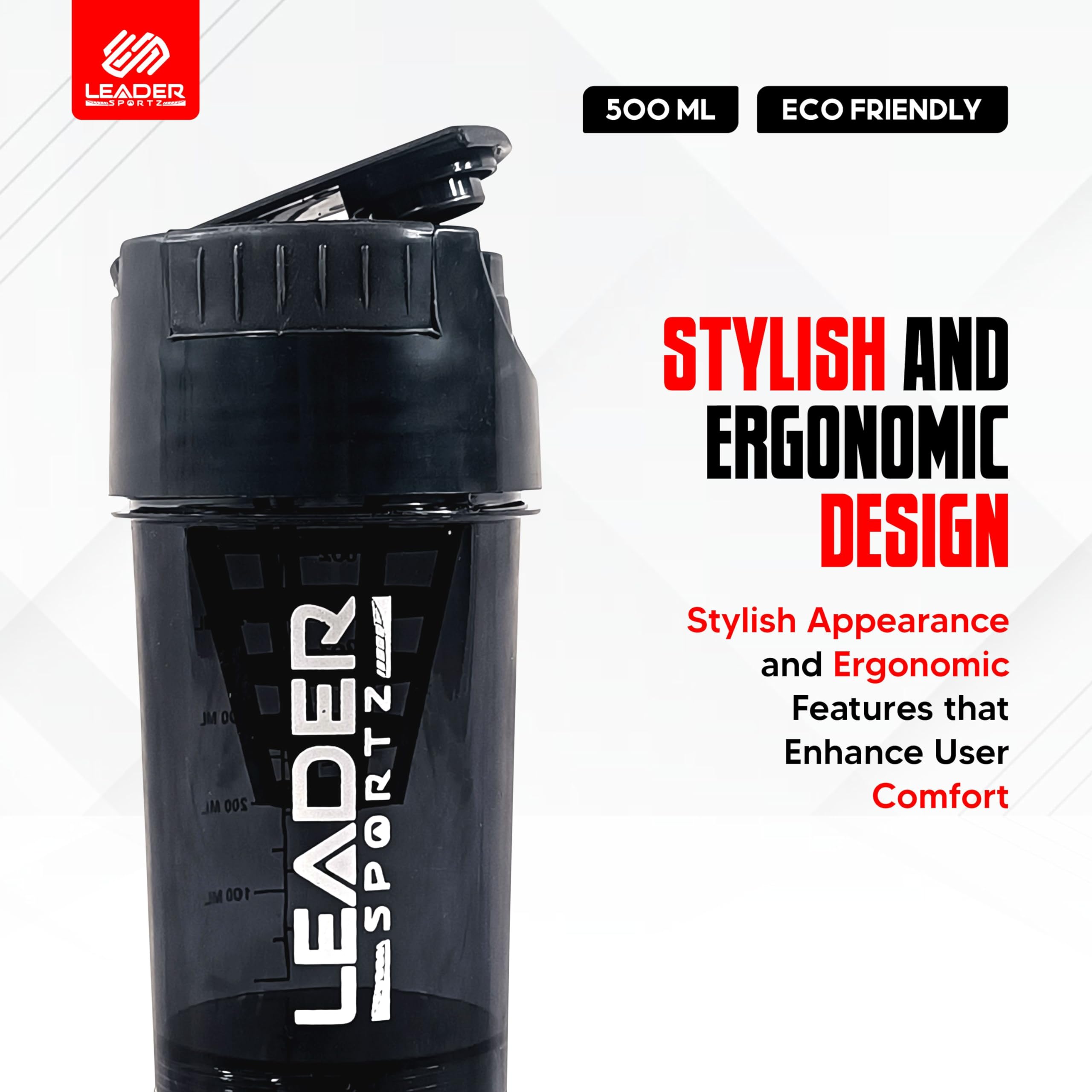 Leader Sportz Gym Shaker Pro Cyclone Bottle 500ml - Leakproof Sturdy BPA Free - Ideal for Protein Preworkout| Advanced Mixing Technology - Extra Compartment for Supplements