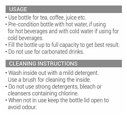 Double walled Vacuum insulated technology keeps beverages hot or cold for 24 hours Inner copper coating for better temperature retention. A unique bottle that makes pouring completely hassle-free and spill-free.