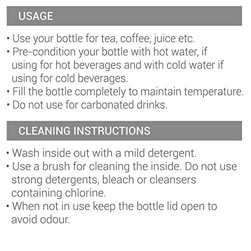 Easy to Clean and Maintain: The Milton Thermosteel bottle is easy to clean Use a mild detergent or dish wash liquid and clean on the inside with a bottle brush
