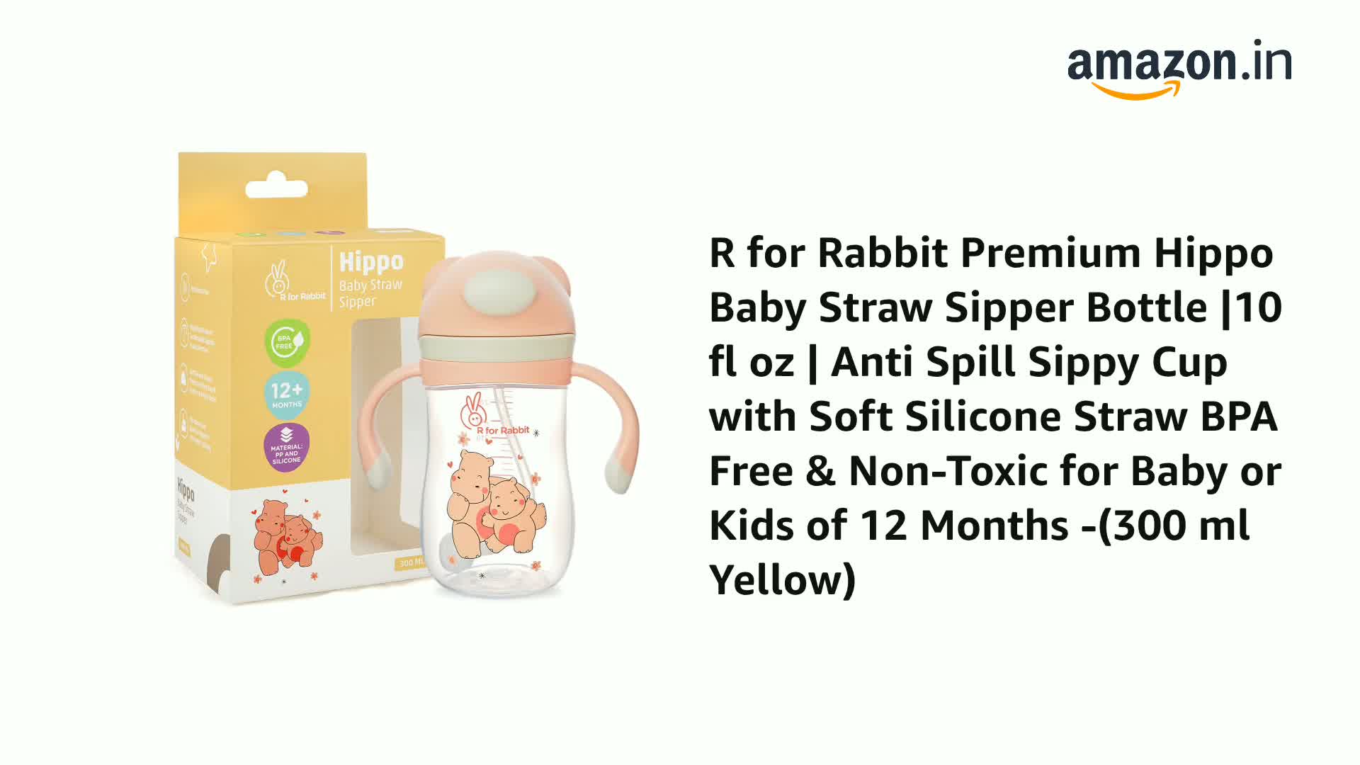 HomeKitchenContainersBottlesR for Rabbit Premium Hippo Baby Straw Sipper Bottle |10 fl oz | Anti Spill Sippy Cup with Soft Silicone Straw BPA Free & Non-Toxic for Baby or Kids of 12 Months -(300 ml Yellow)