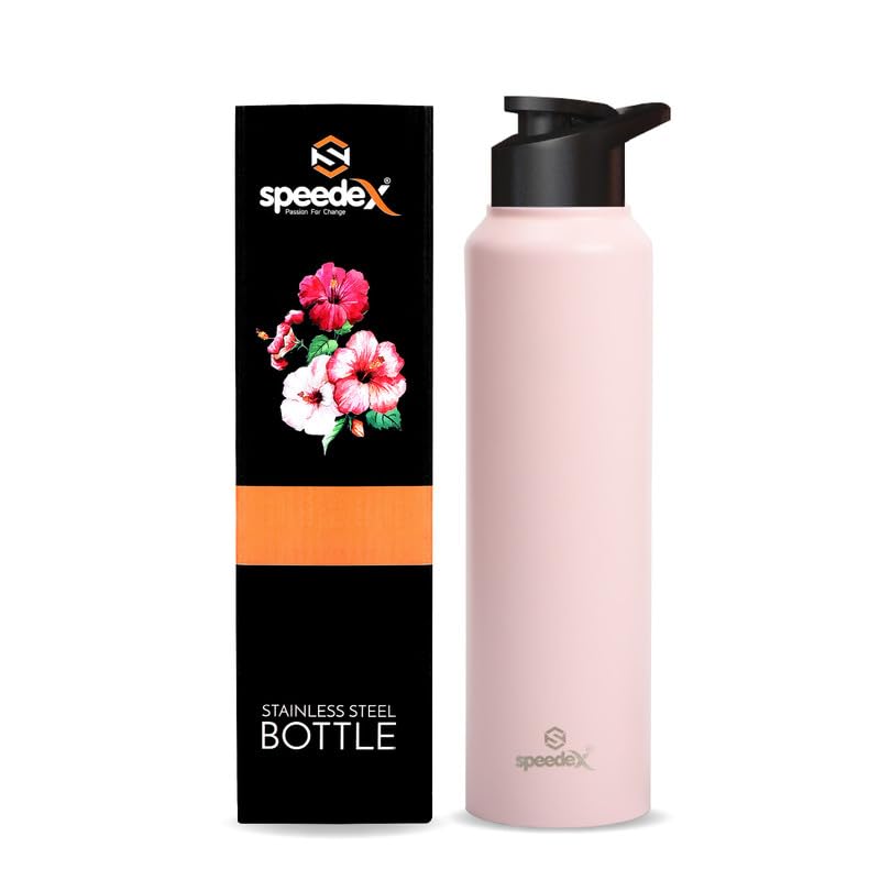 HomeKitchenContainersBottlesSpeedex Stainless Steel Water Bottle 1 Litre Leakproof Sipper Cap 1 Ltr Pastel Pink Bottles 1+ Litre for School Gym Office Boys Girls Men Women Kids Fridge 1Ltr - 1000 ml - Set of 1