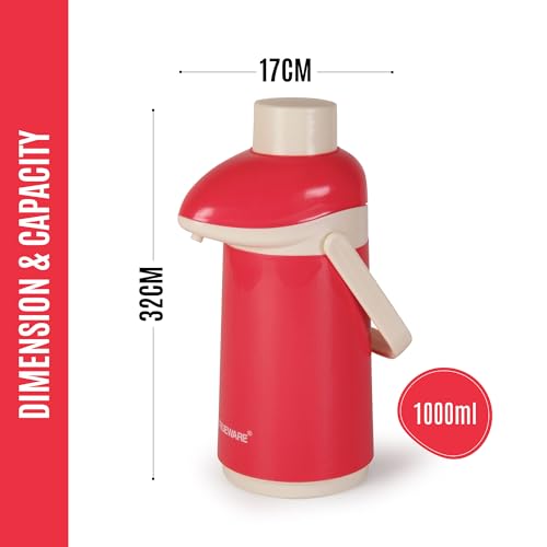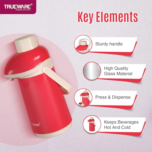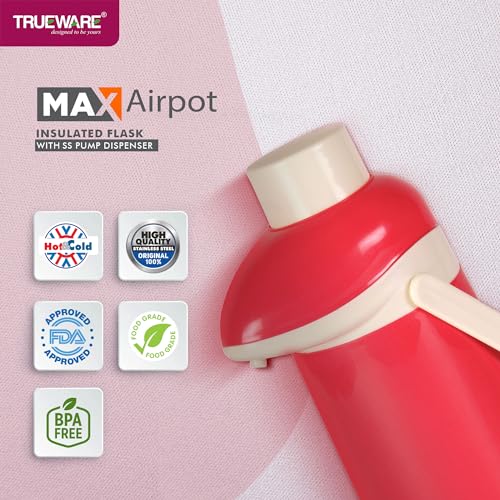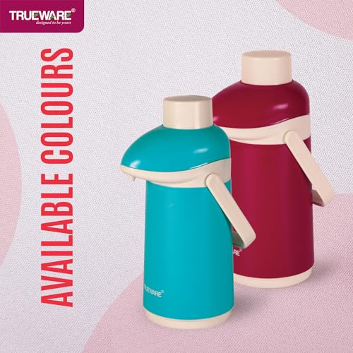 Trueware Insta Inner Steel Outer Plastic Pu Insulated | Double Wall|1 LTR Airpot Flask | BPA Free | Hot and Cold Many Hours| Tea Coffee Flask | Traveler Flask | Thermos (Pink)