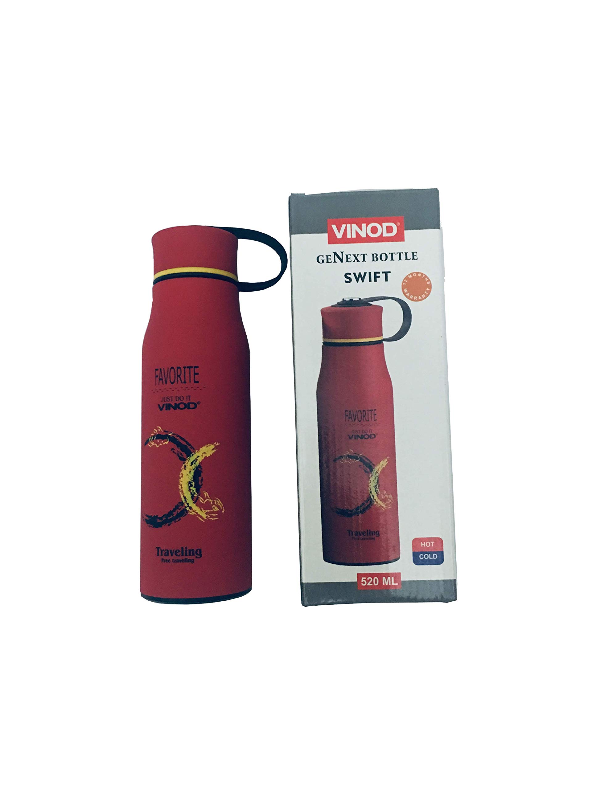 Vinod Inside Stainless Steel Water Bottle for Office and Home (Red,520ML)