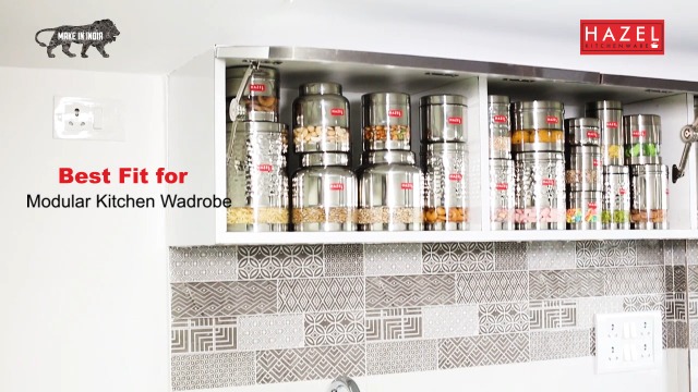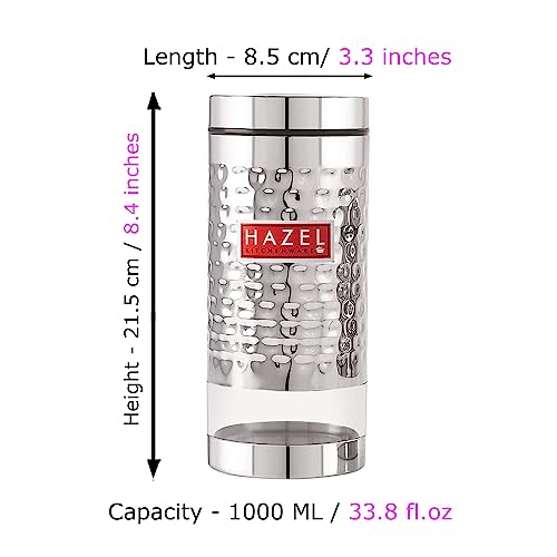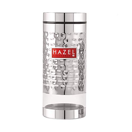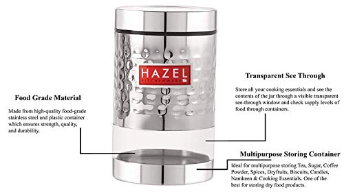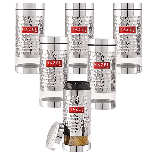 HomeKitchenContainersCanisterHAZEL Stainless Steel Hammered Finish Transparent Glossy See Through Container | Airtight Transparent Kitchen Container for Storage Set of 6, 33.8 OZ