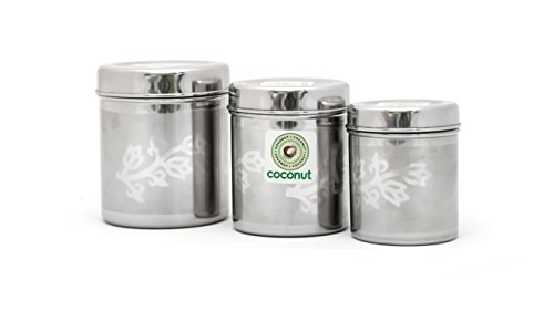 COCONUT Stainless Steel Container - 500 ml 750 ml 1000 ml 3 Pieces White