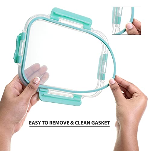 Cutting EDGE Rectangle Glass Food Storage Container with Break Free Detachable Locks, Microwave Oven Safe, Freezer Safe, Airtight, Leakproof (370ML+640ML+1040ML+1520ML)