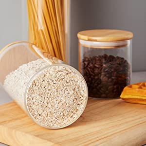 These attractive smaller glass canister jars will help keep food ingredients treats or smaller personal and household items organised and ready for use.