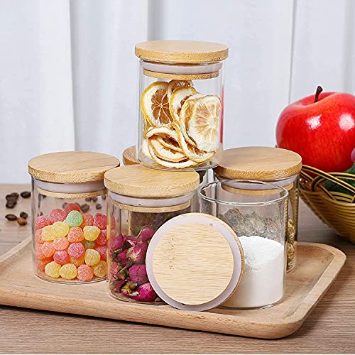 LABROS 6 Bottles Glass Jar Set Small Air Tight Canister Storage Containers with Natural Bamboo Lids