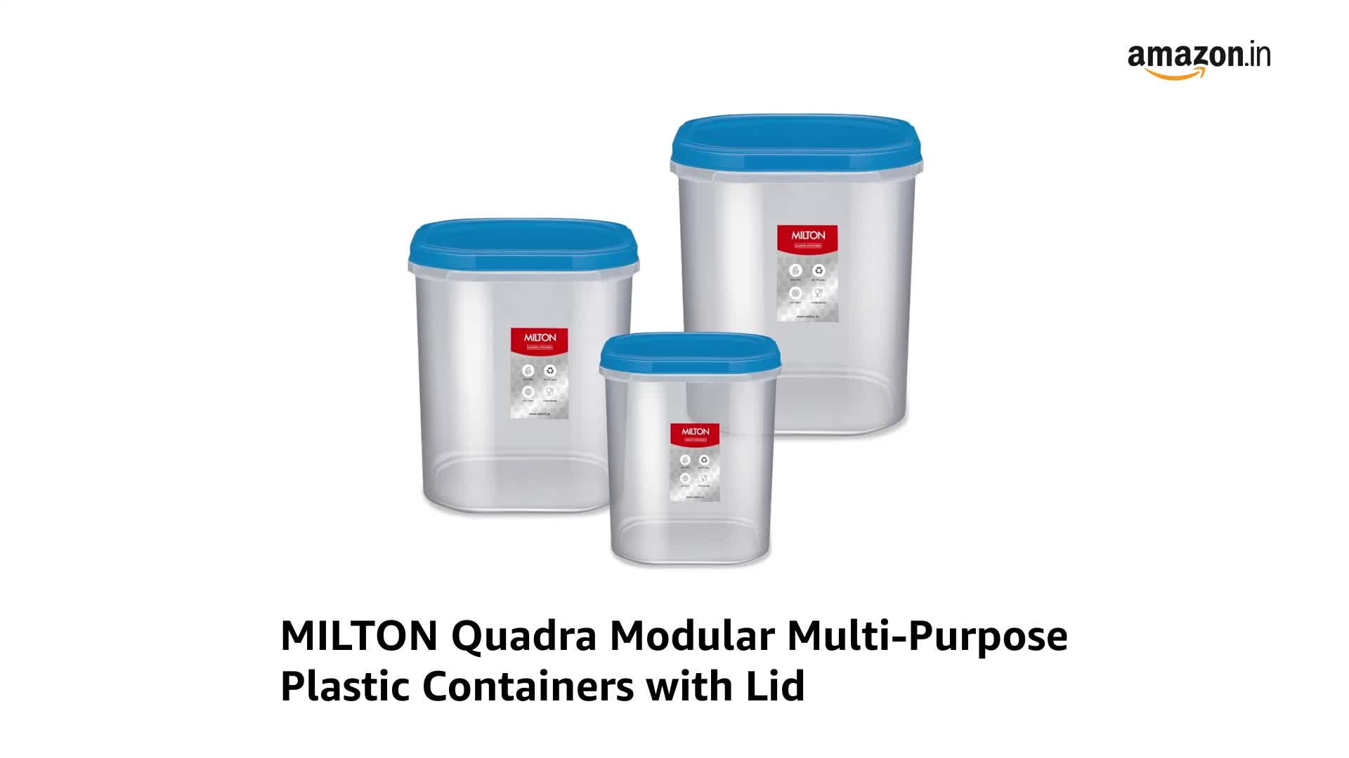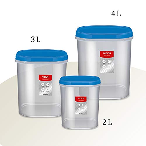 HomeKitchenContainersJars & ContainersMILTON Quadra Modular Multi-Purpose Plastic Containers with Lid, Set of 3 (2L, 3L & 4L) Kitchen Storage Container Set for Spices, Atta, Grains Organizers, Transparent Dabba, Brown