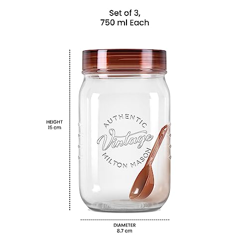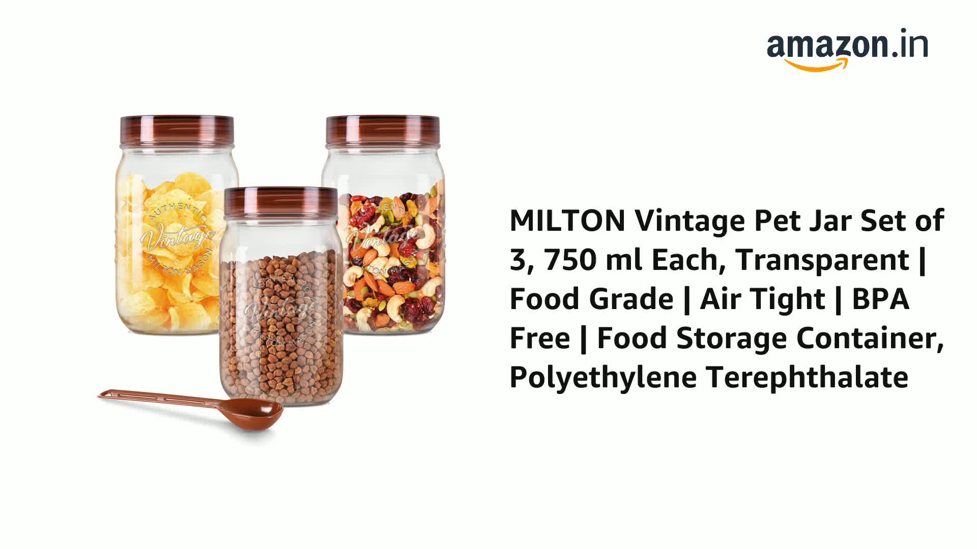 HomeKitchenContainersJars & ContainersMILTON Vintage Pet Jar Set of 3, 750 ml Each, Transparent | Food Grade | Air Tight | BPA Free | Food Storage Container for Kitchen