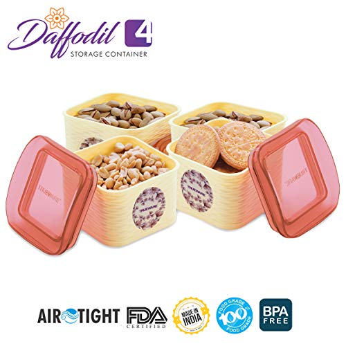 Trueware Daffodil Storage Container 500 ml (Set of 4 pcs with tray) Unbreakable Airtight Cookies Dry