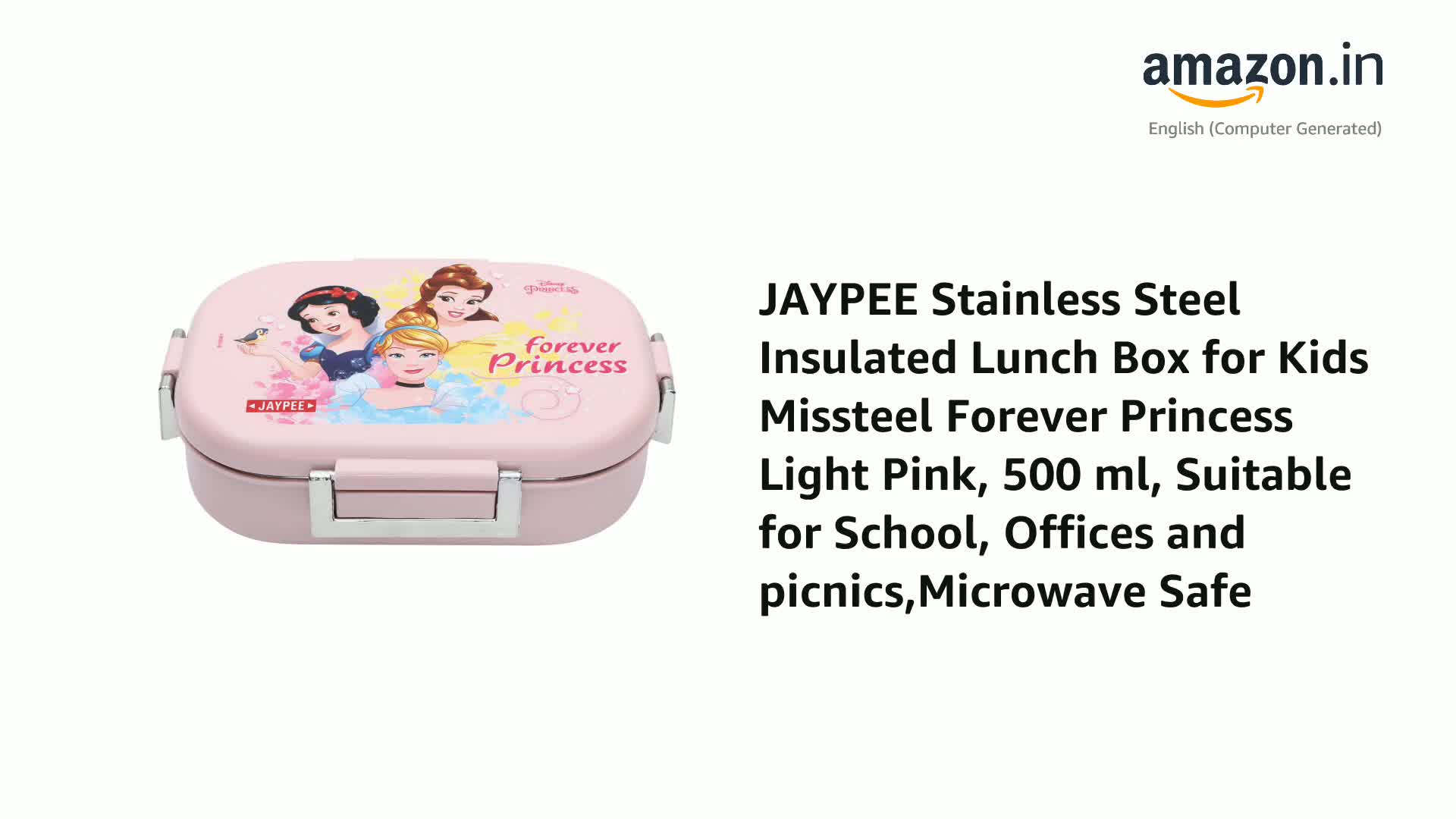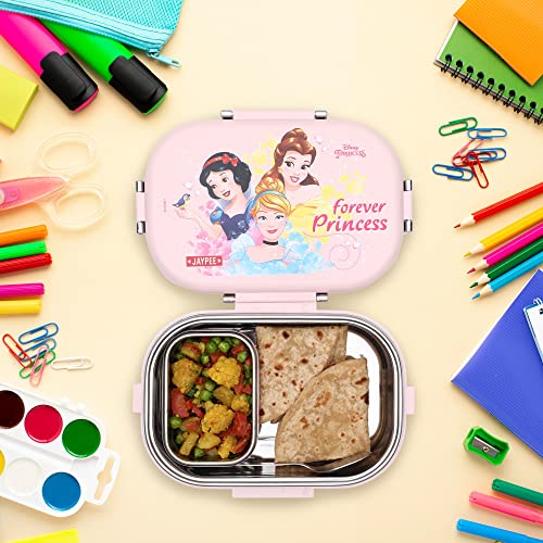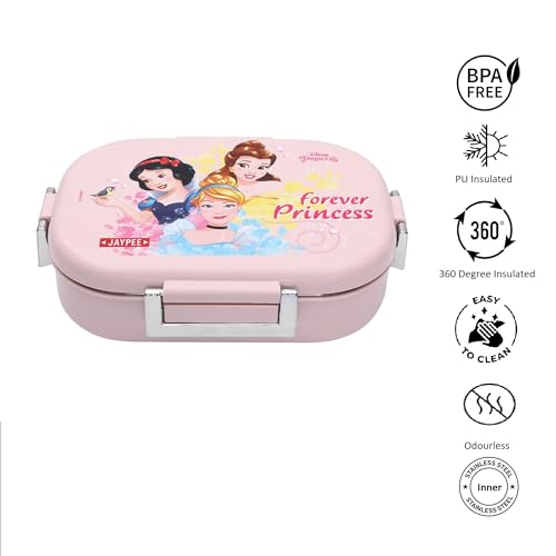 JAYPEE Inner Stainless Steel Insulated Lunch Box for Kids Missteel Forever Princess Light Pink, 500 ml, Suitable for School, Offices and picnics,