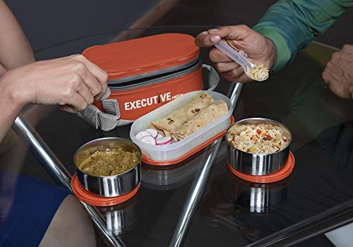 Milton Executive Lunch Insulated Tiffin with 3 Leakproof Containers (Orange)