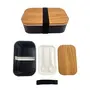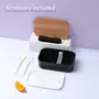 HomeKitchenContainersLunch BoxesMINISO Lunch Box Plastic Divided Wood Grain Design Lid Bento Box with Cutlery Lunch Box for Office Women Lunch Box for Kids 900ml (Black)