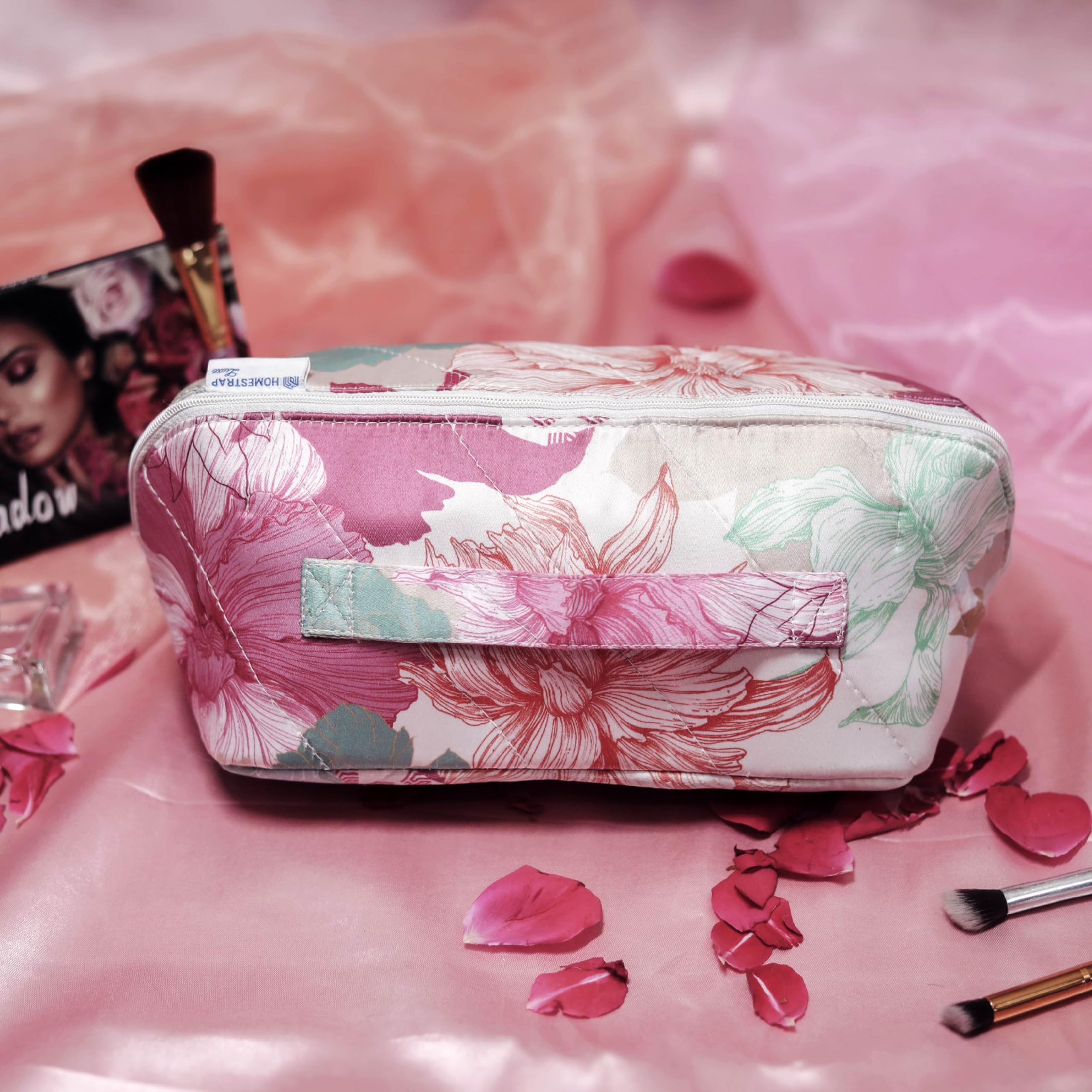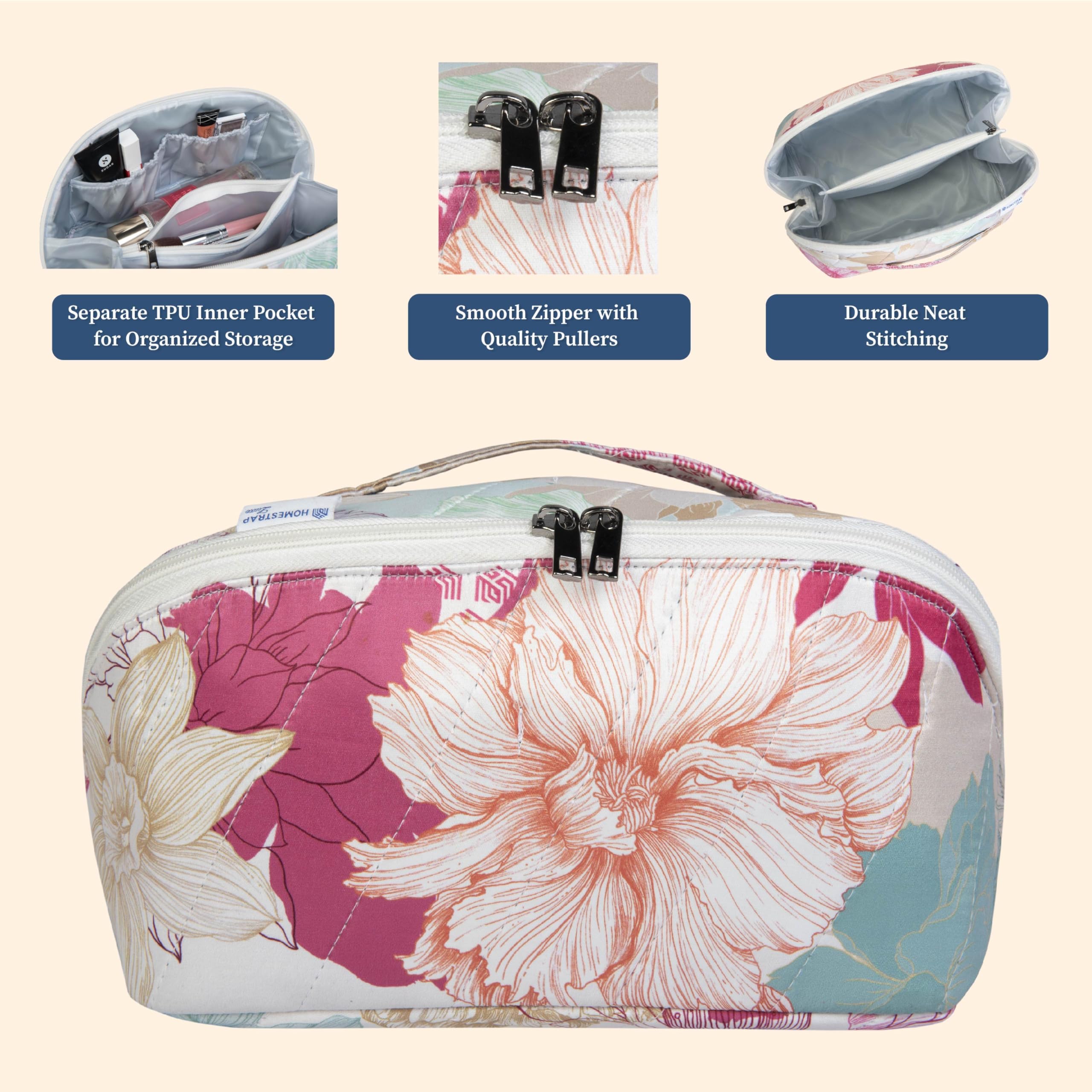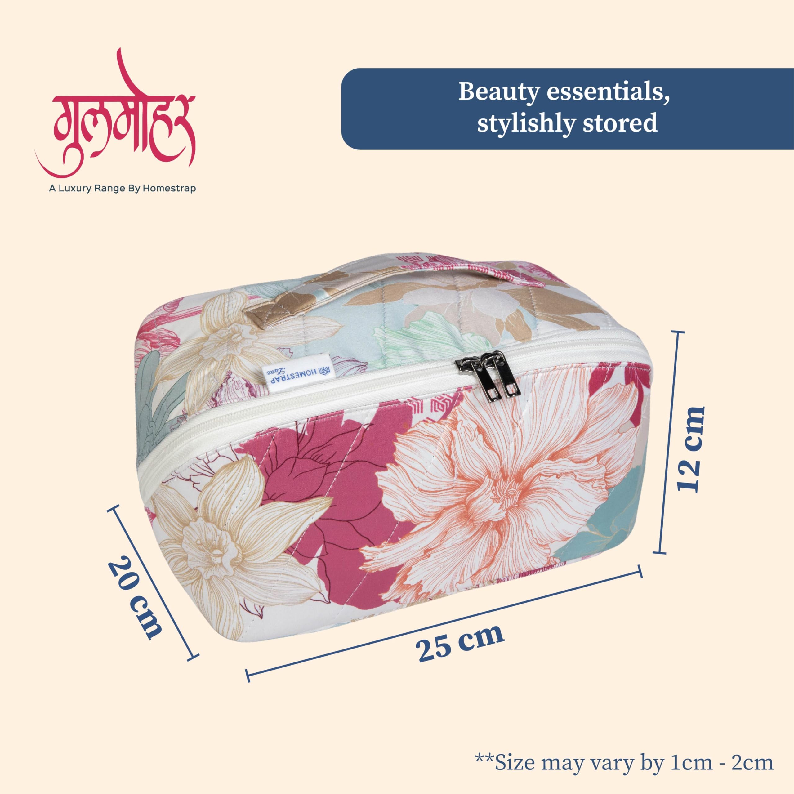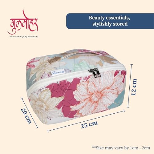 HomeKitchenContainersProduce Storage BagsGulmohar by Homestrap Luxe Cosmetic Pouch - Floral Design Multi-Functional | Makeup Organizer Bag | Cosmetic Bag for Homes Gifting and Travel (Pink)
