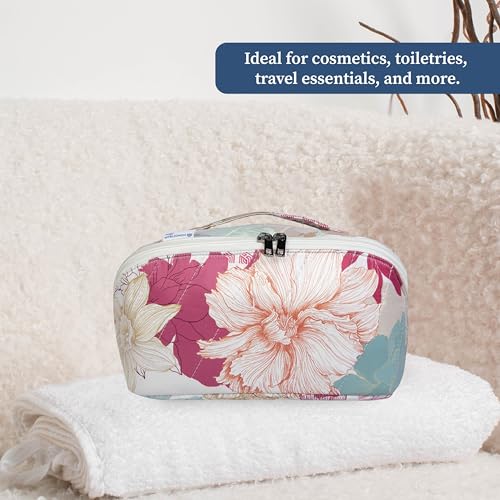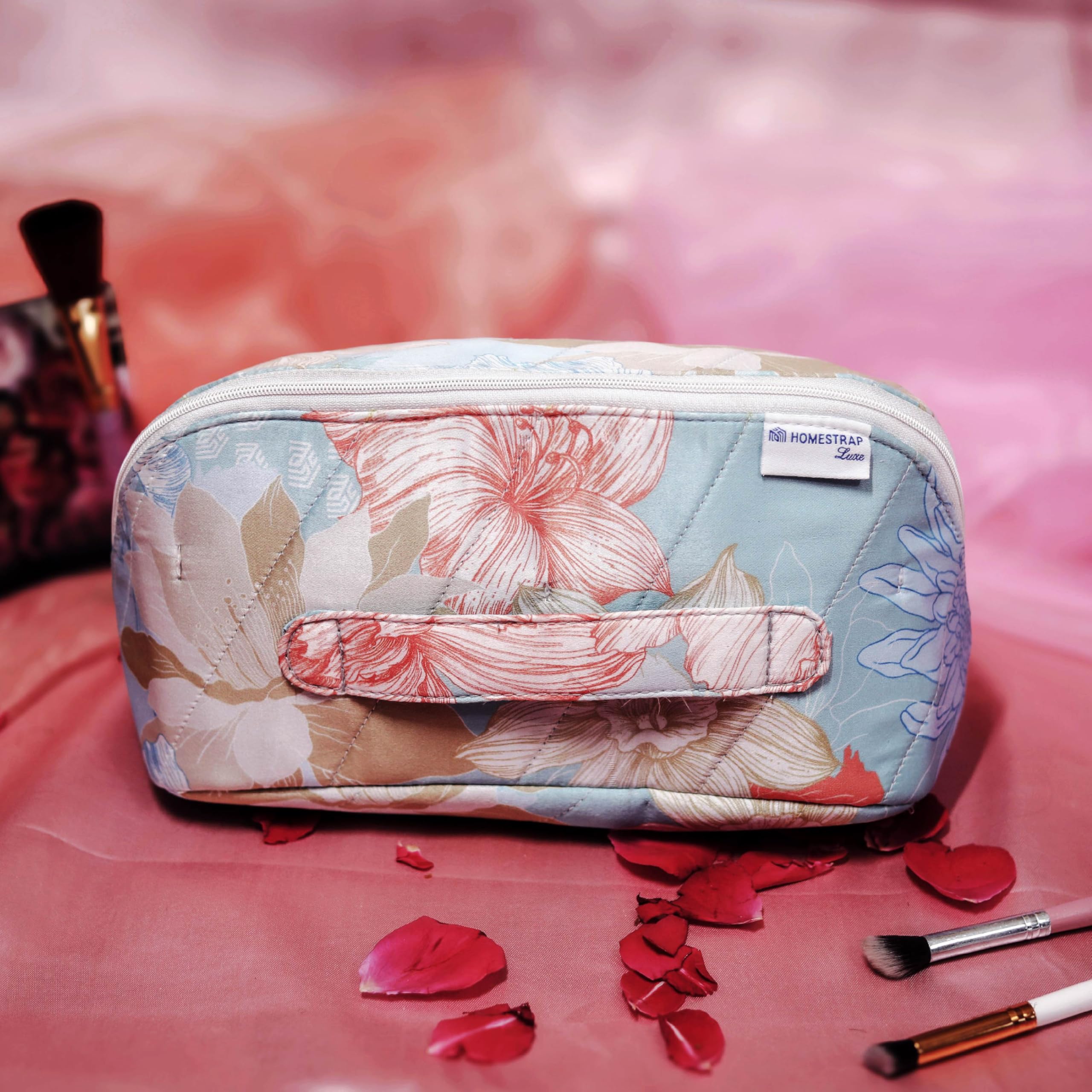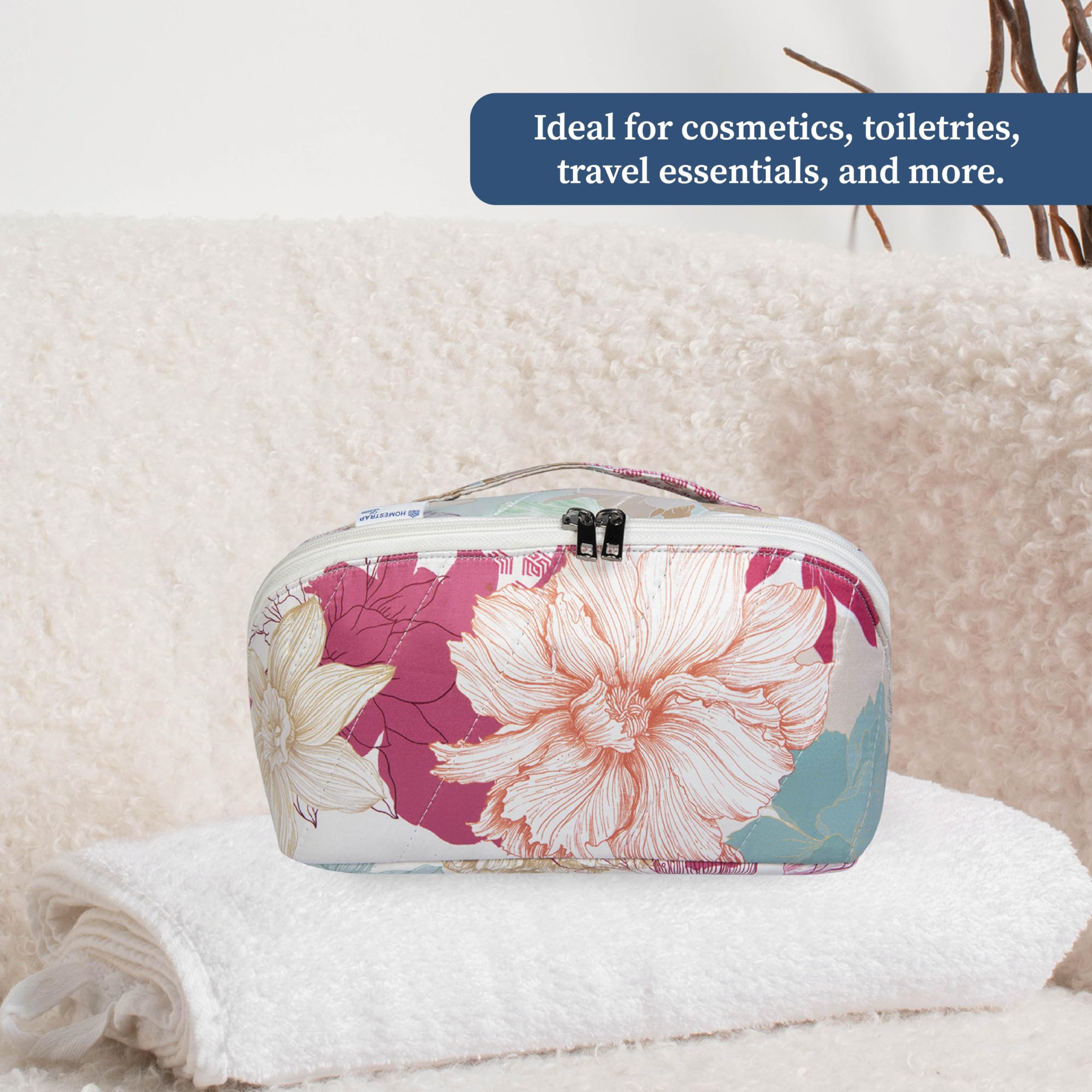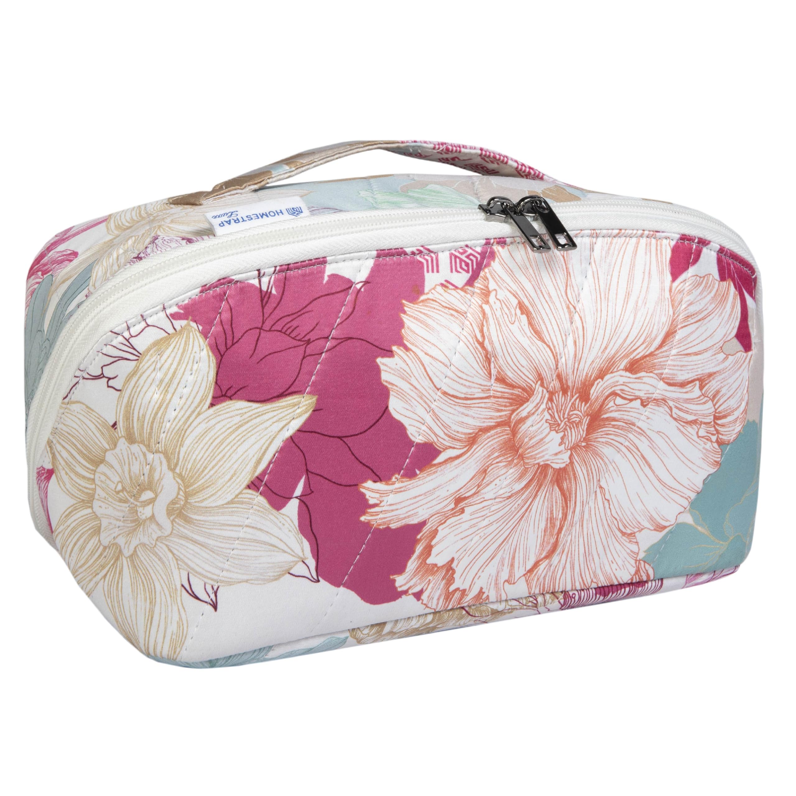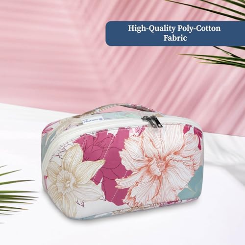 HomeKitchenContainersProduce Storage BagsGulmohar by Homestrap Luxe Cosmetic Pouch - Floral Design Multi-Functional | Makeup Organizer Bag | Cosmetic Bag for Homes Gifting and Travel (Pink)