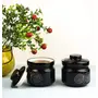 KHURJA POTTERY Hand Painted Ceramic/Stoneware Multipurpose Jar 300ml Set of 2 Black