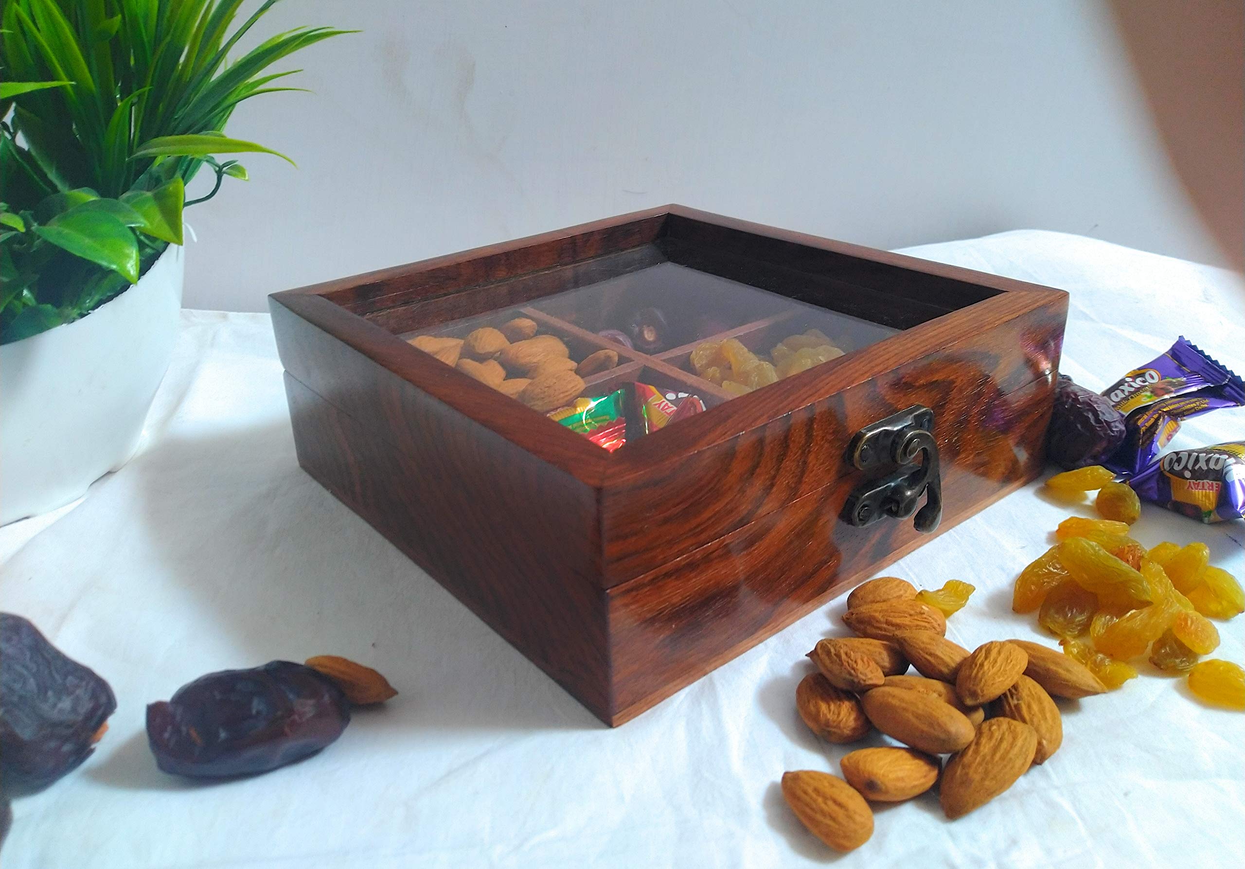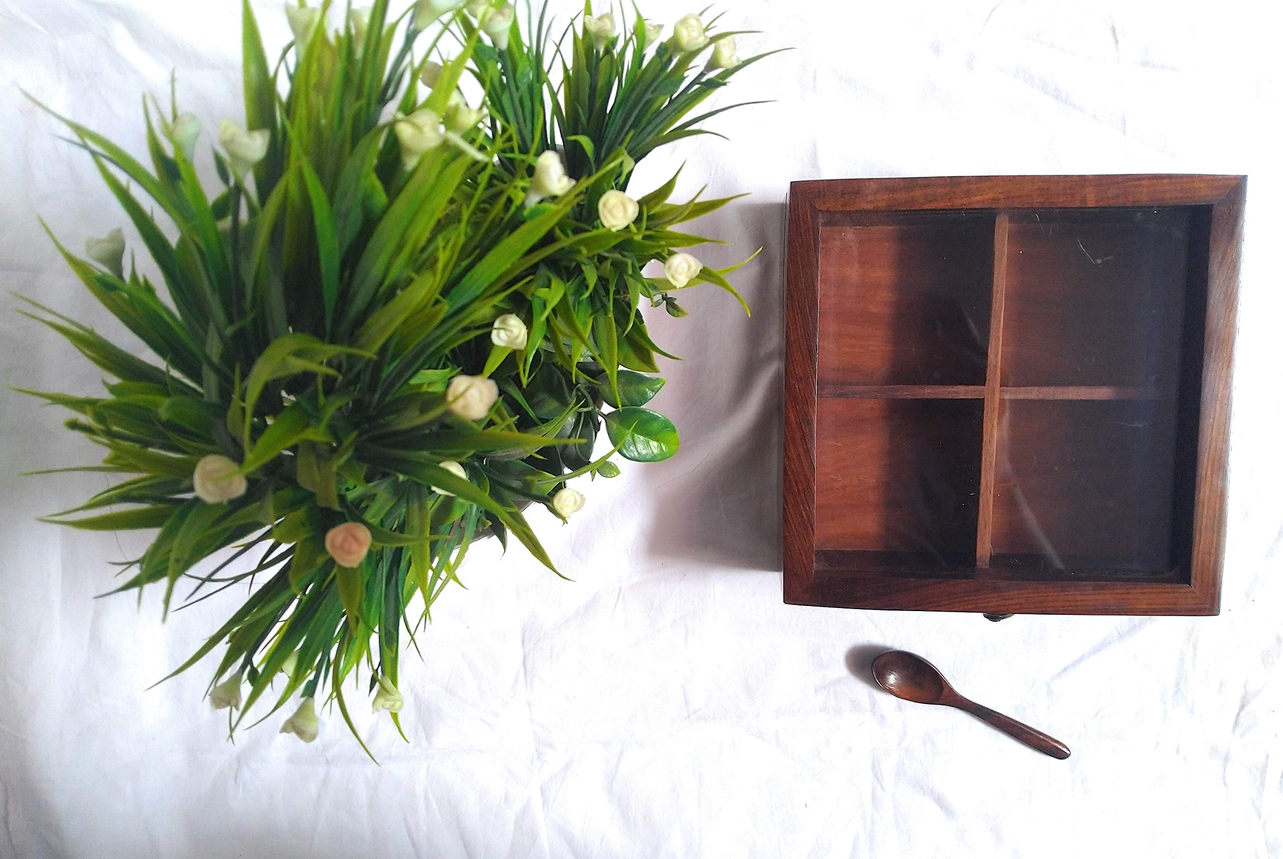 SAHARANPUR HANDICRAFTS Wooden Dryfruit Box | Dryfruit Container | Gifting Box For Dryfruit Cum Spice Box | Kitchen Box