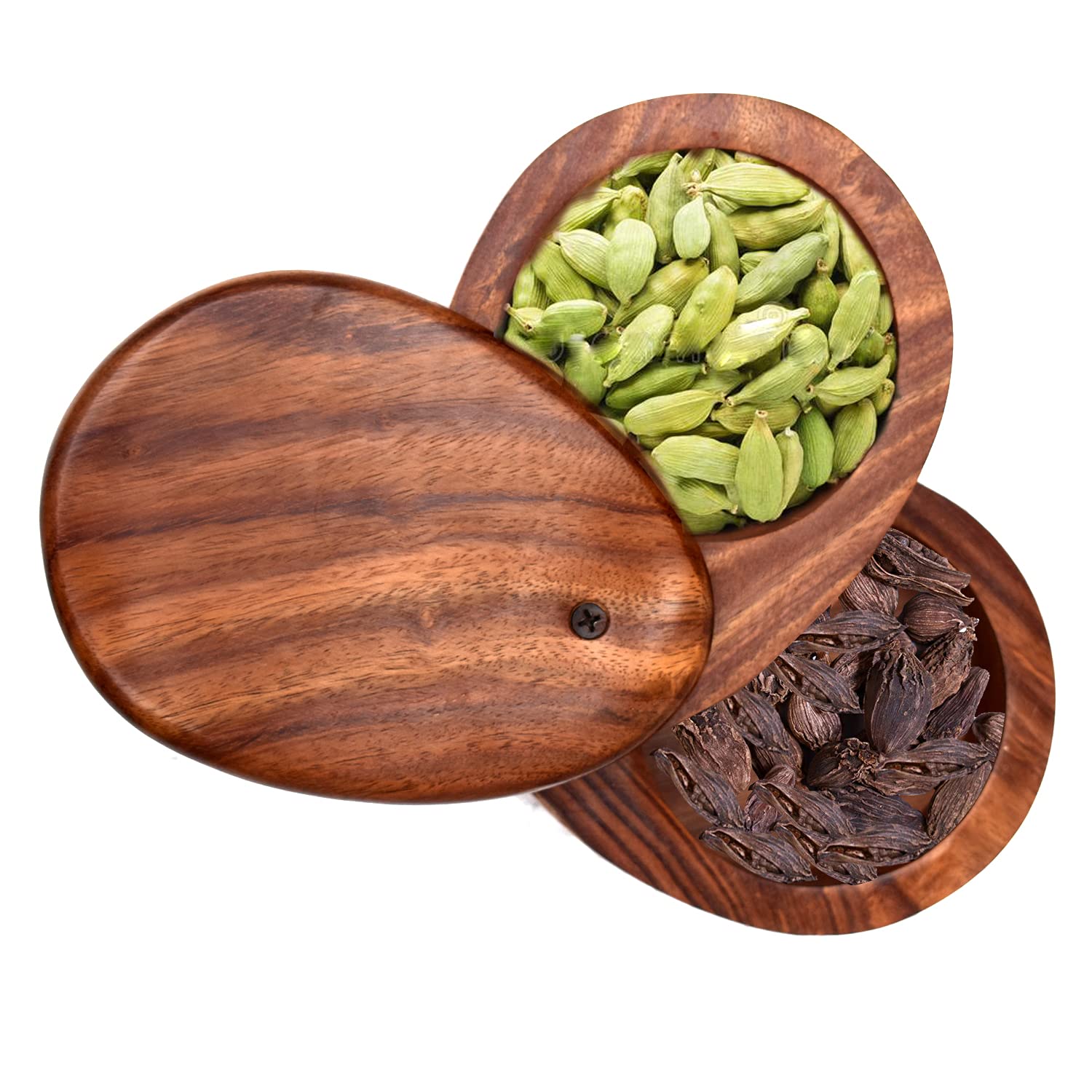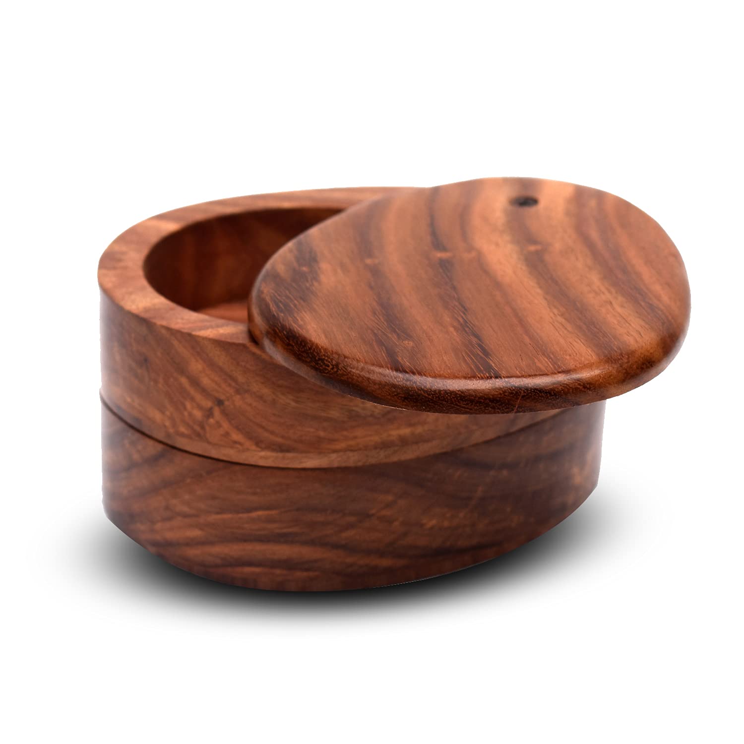 HomeKitchenContainersSpice BoxesSAHARANPUR HANDICRAFTS Wooden Salt Box & Pepper Storage Bowls With Swivel Lid Container And Pepper Boxes Double Swivel Wooden Spice Box/Dabba Racks For Kitchen Size: 5.75 X 4 X 3.75 Inch 400 milliliter