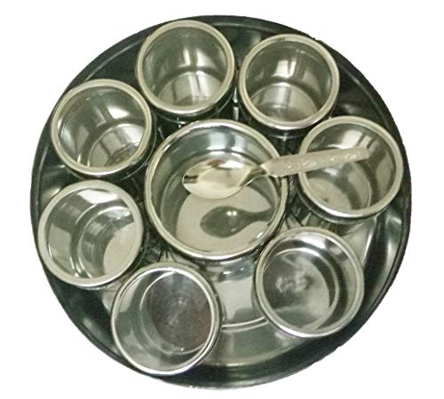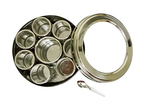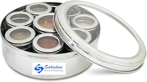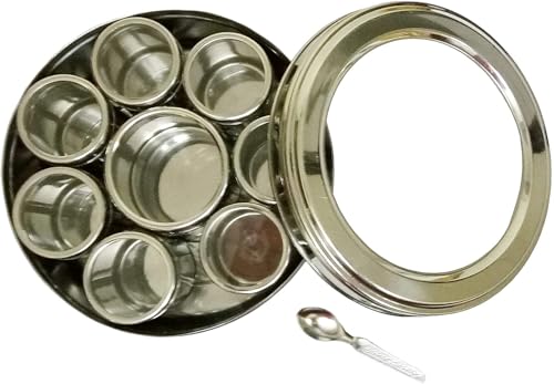 Stainless Steel Transparent Masala Box/Spice Box/Masala Dabba/Spice Container - Set of 9pcs