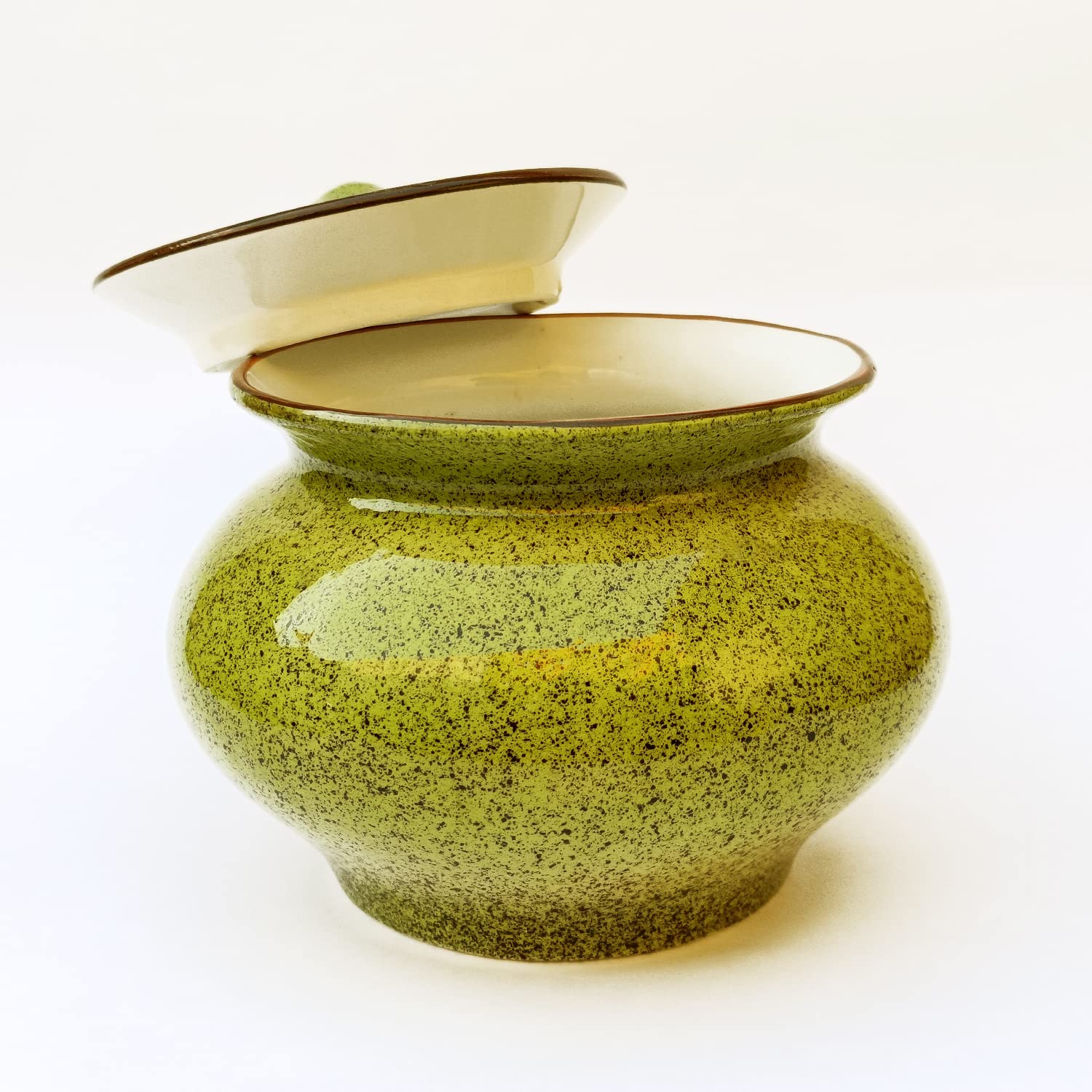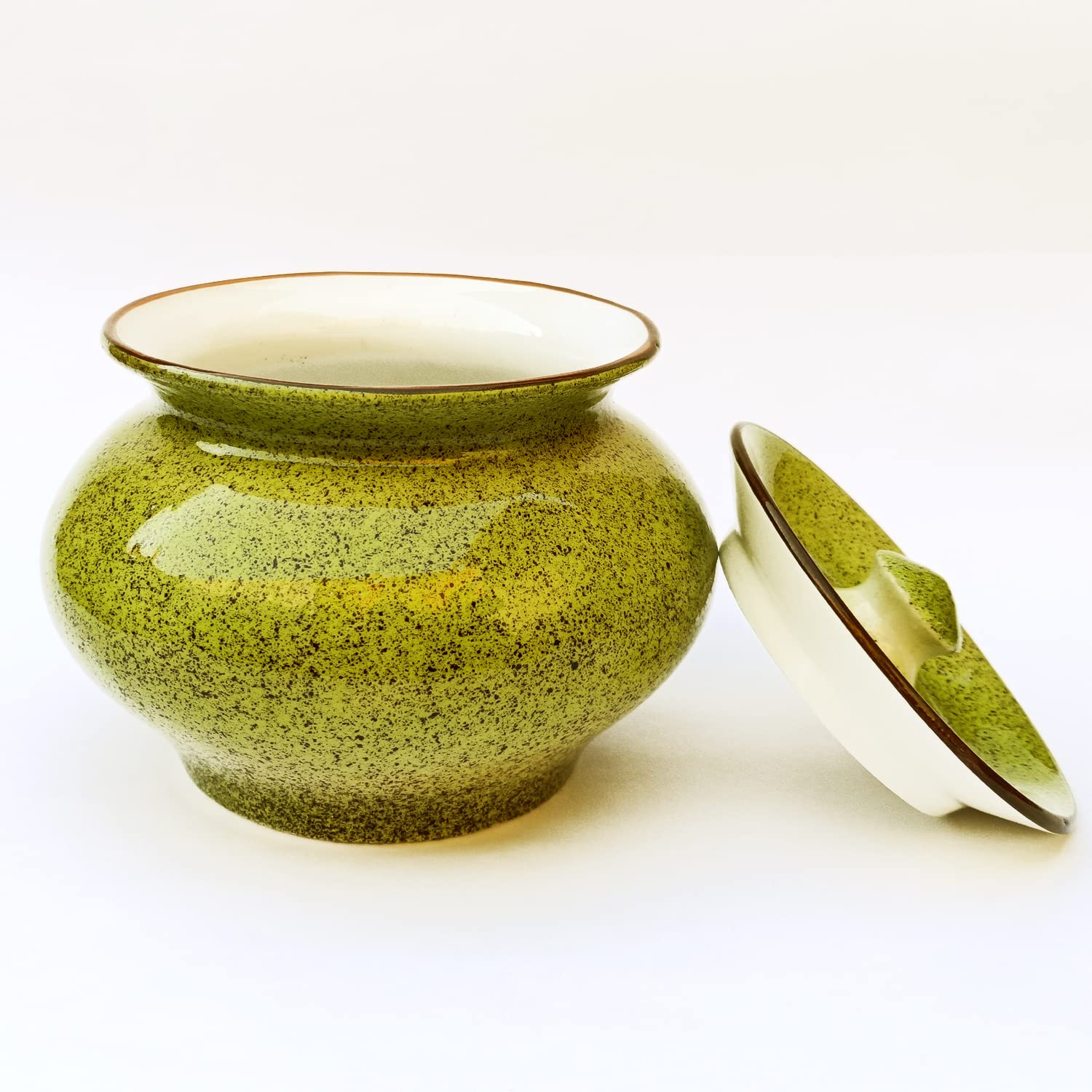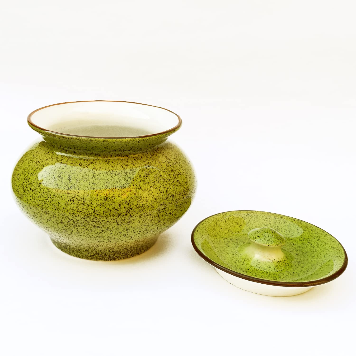 HomeKitchenCookwareHandisKHURJA POTTERY Handpainted & Handcrafted Ceramic Green Spray Painted Handi 1250 ml | Dahi Handi | Serving Handi | Biryani Handi