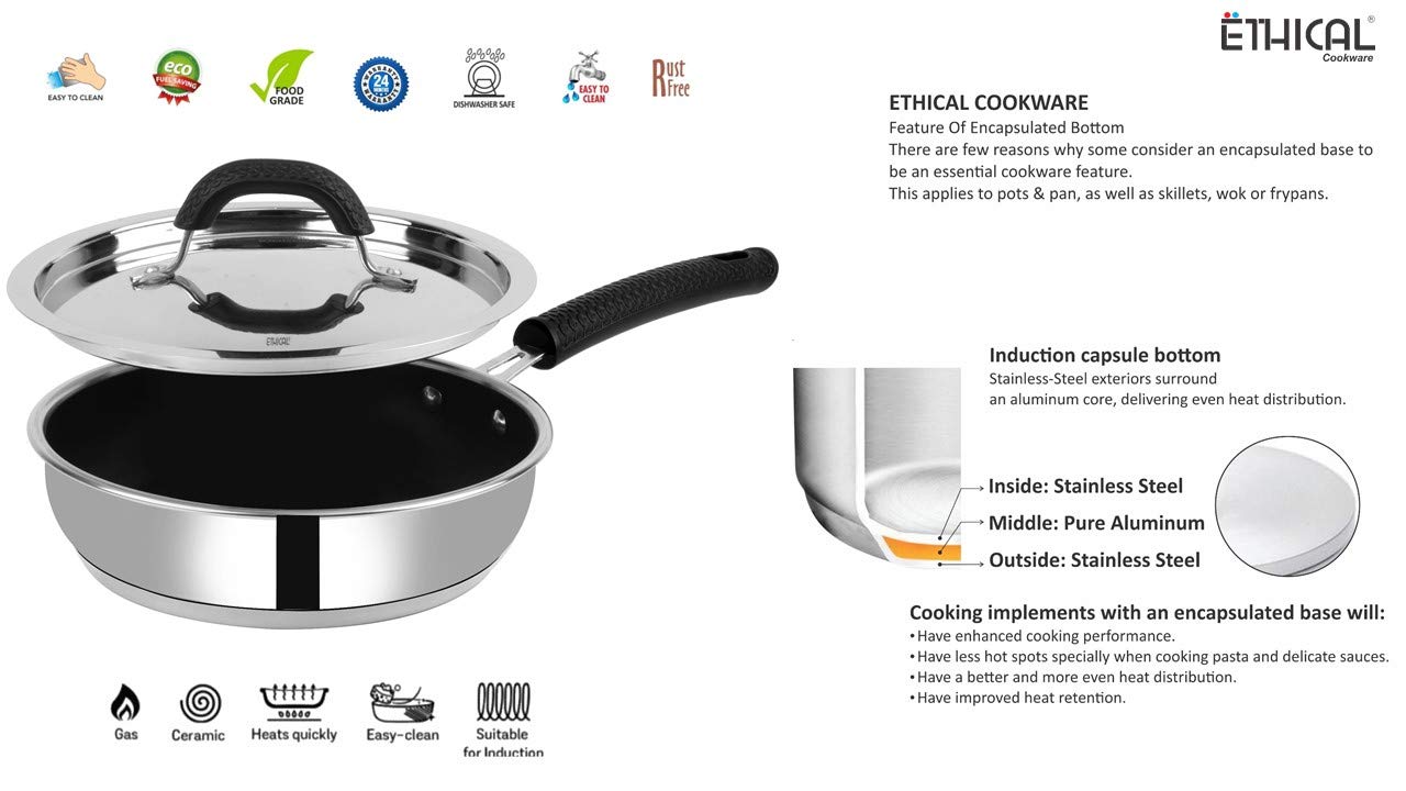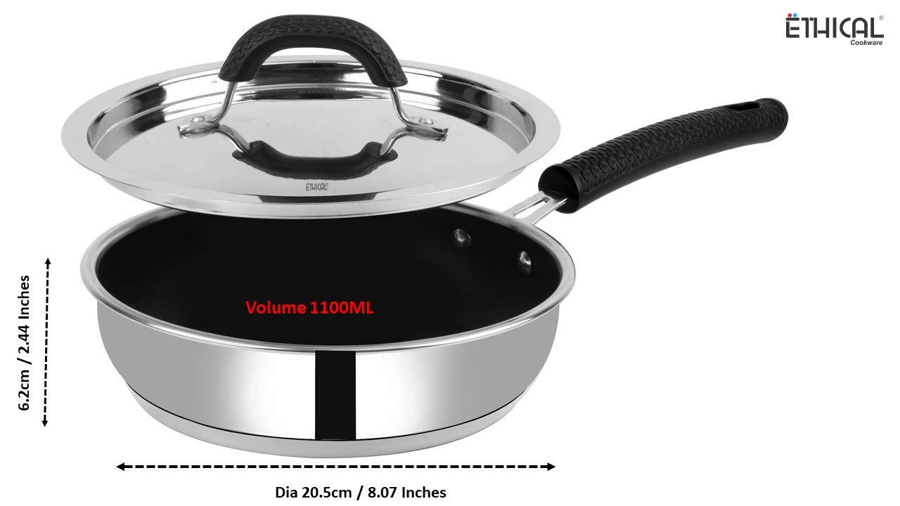 ETHICAL CLASSICART Stainless Steel Encapsulated Bottom Non-Stick Fry Pan with SS Lid (20.5cm)