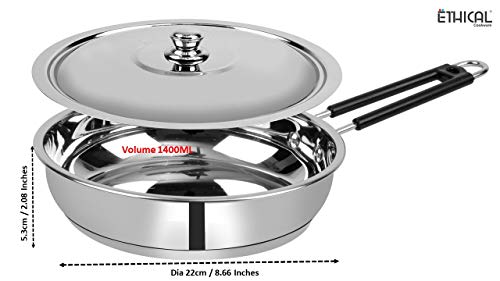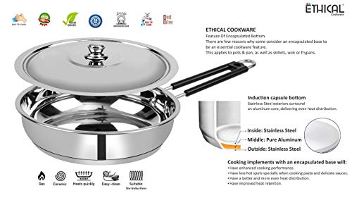 ETHICAL FINEART Stainless Steel Encapsulated Bottom Fry Pan with SS Lid (1.4L)