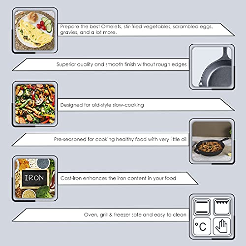 Wonderchef Forza Cast-Iron Fry Pan Pre-Seasoned Cookware Induction Friendly 24cm 3.8mm
