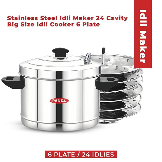 Make 24 Idlis at Once PANCA idli maker with 6 plates lets you steam up to 24 soft, fluffy idlis in one go. Ideal for family breakfasts, gatherings, or meal prepping.
