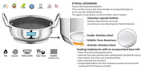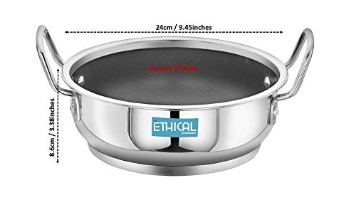 Ethical Non Stick Stainless Steel Kadhai (Black Silver_ 2.7 L)