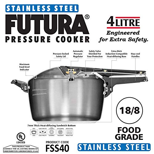 Hawkins Futura Stainless Steel Induction Compatible Inner Lid Pressure Cooker, 4 Litre, Silver (FSS40)