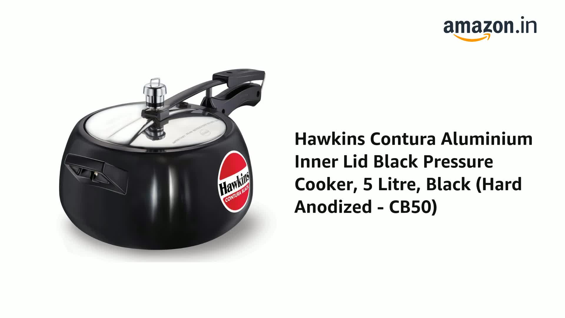 HAWKINS Hawkins Contura Black Pressure Cooker, 5 Litre, Black (Hard Anodized - CB50), Medium