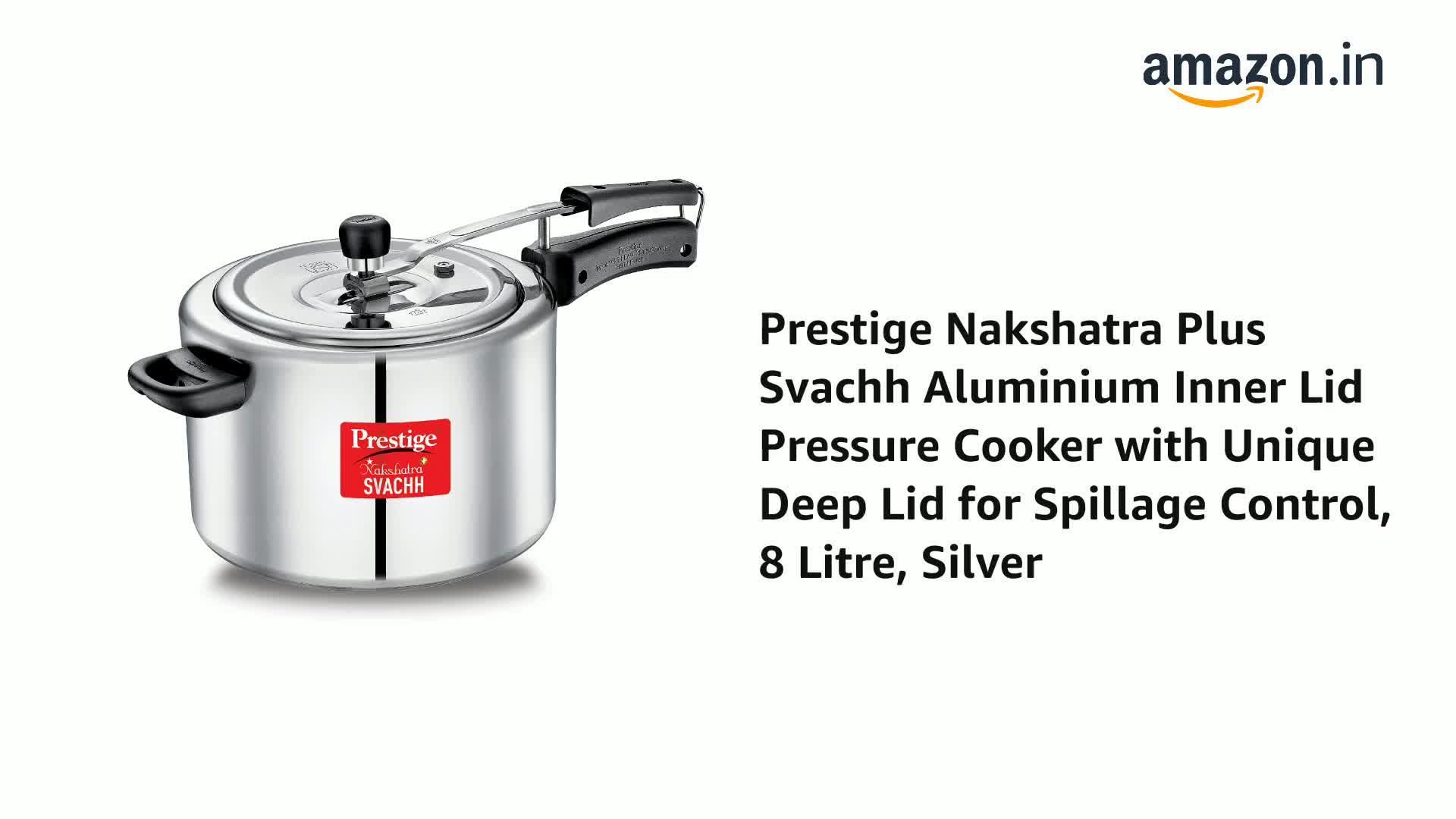 Prestige Nakshatra Plus Svachh Aluminium Inner Lid Pressure Cooker with Unique Deep Lid for Spillage Control, 8 Litre, Silver