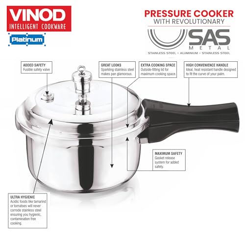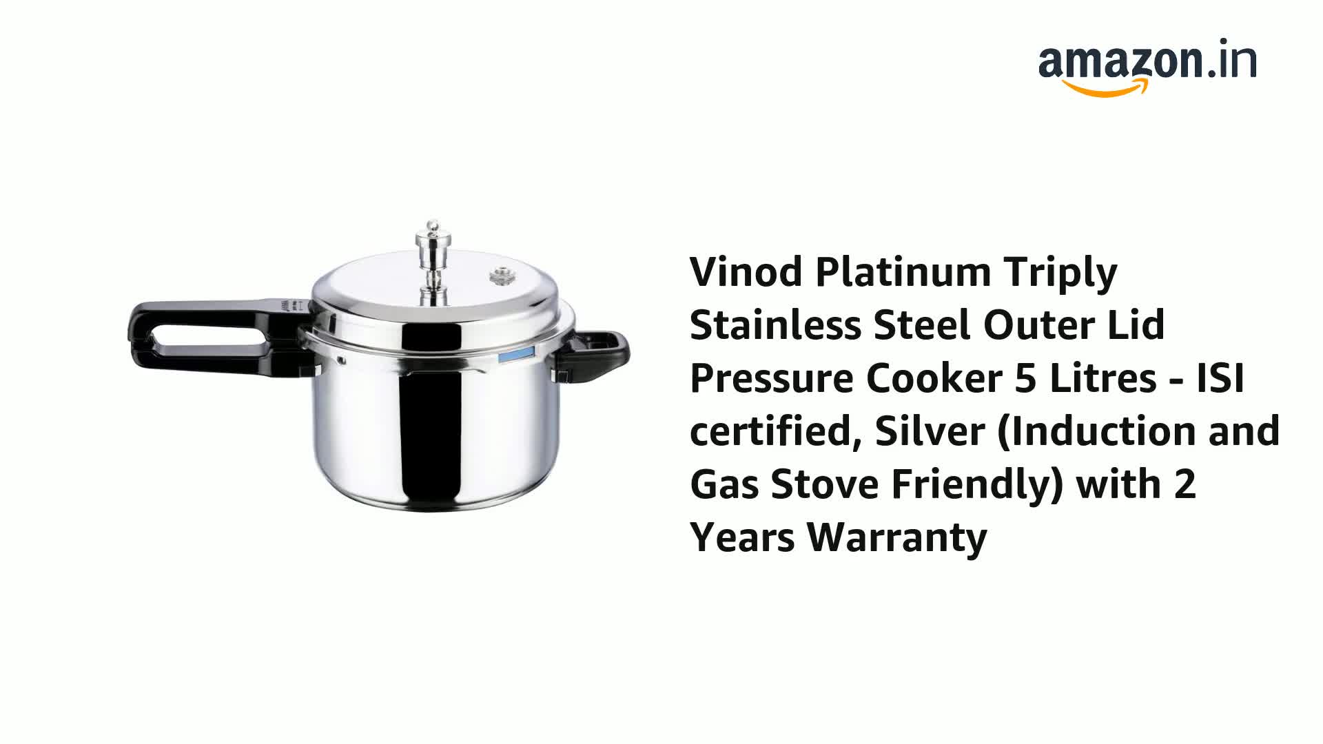 Vinod Platinum Triply Stainless Steel Pressure Cooker- 5 Ltr (Induction Friendly)
