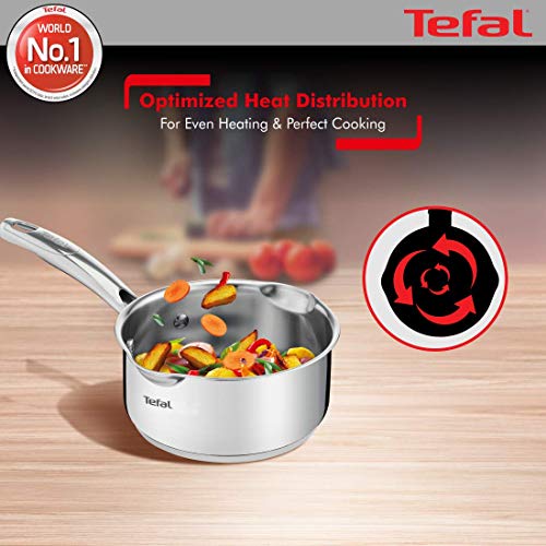 Tefal Duetto Plus Stainless Steel Sauce Pan 16 cm with Glass Lid Silver