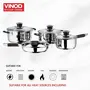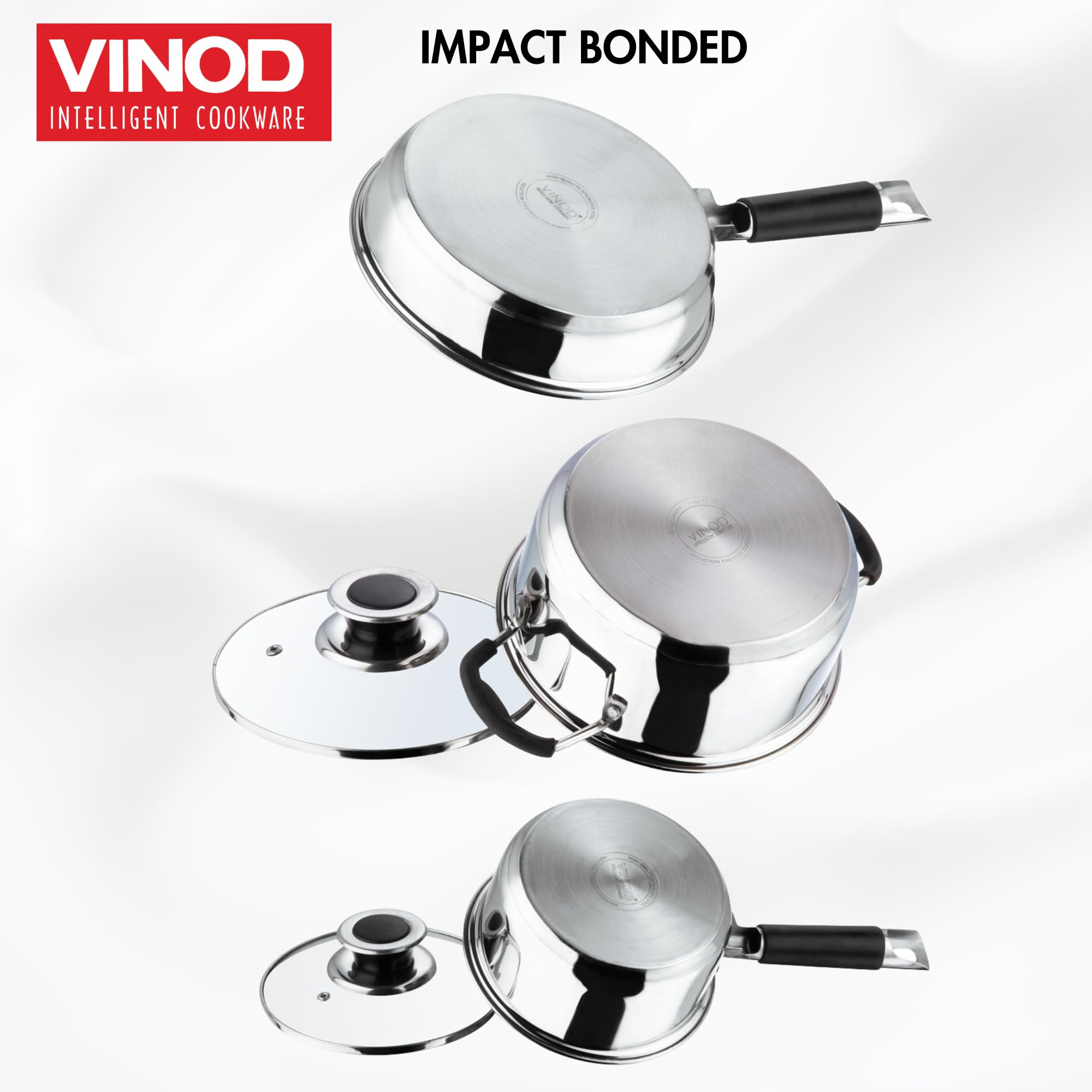 Vinod Stainless Steel Glass Saucepot Saucepan Frypan with Lids Saucepan - 1.5 L Saucepot - 2.1 L 3 L