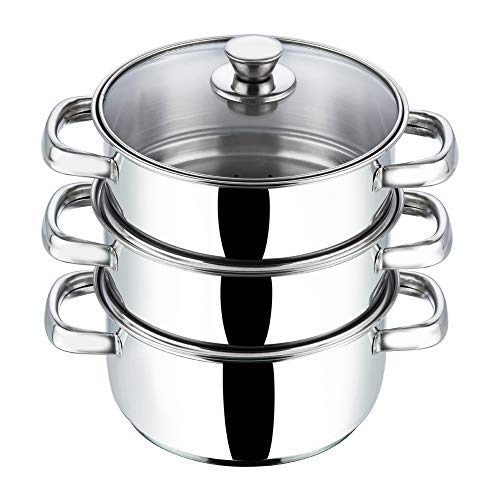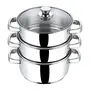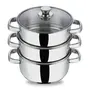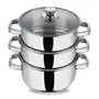 Vinod Stainless Steel 3 Tier Steamer with Glass Lid -20 cm (Induction Friendly)