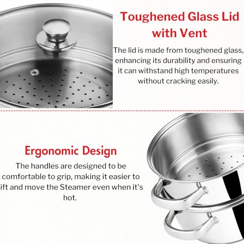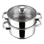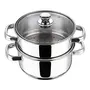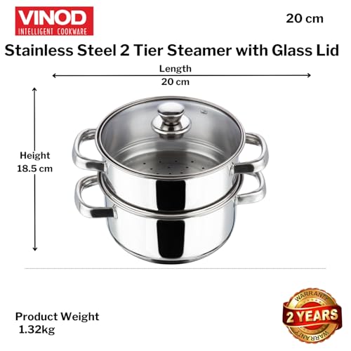Vinod Stainless Steel Steamer 2 Tier with Glass Lid 20 cm | 2.5 mm Thick Base | Multi Purpose Momos, Modak Maker Steamer | Induction and Gas Base | 2 Year Warranty - Silver