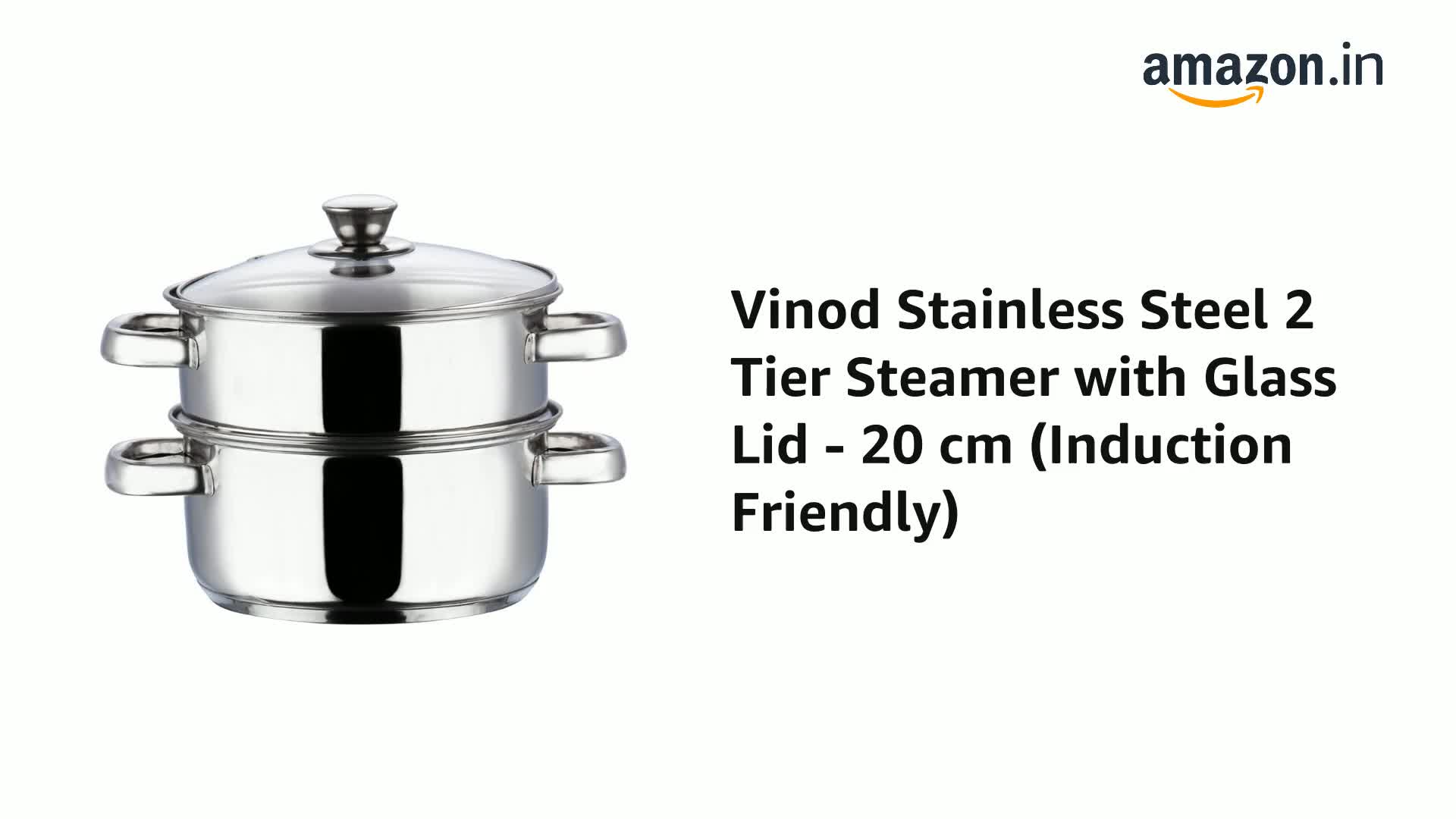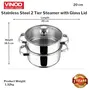Vinod Stainless Steel 2 Tier Steamer/Momo/Modak Maker with Glass Lid & Riveted Handles 20cm (Inducti