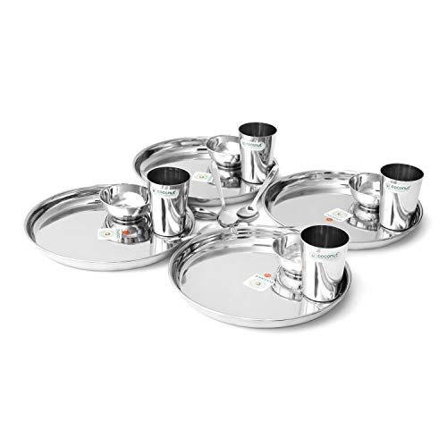 Coconut Stainless Steel Mirror Finish (Heavy Guage) Compact Dinner Set/Dinnerware & Serveware - 18 P