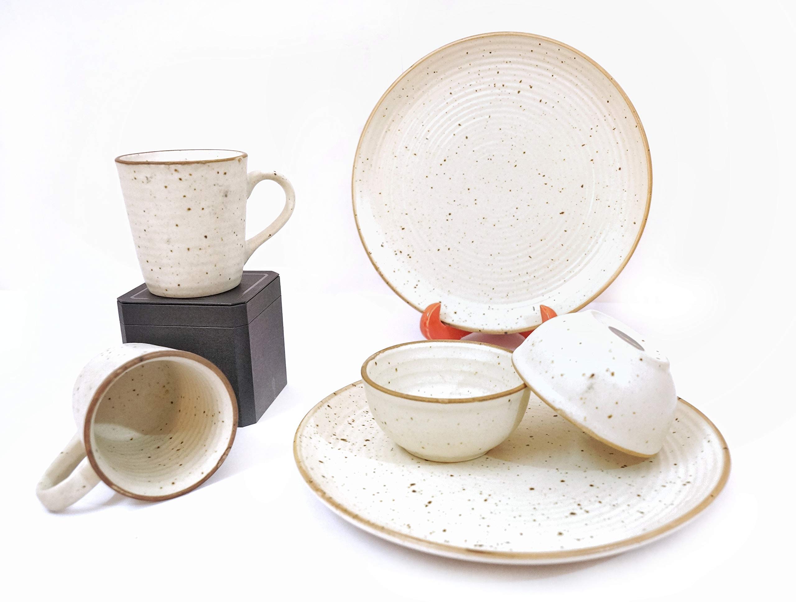 Crock Comforts - Handmade Couple Goal Dinner Set Ceramic Including Stoneware Dinner Plates(10 inch) with Serving Bowl and Coffee Mug(Set of 2, Microwave & Dishwasher Safe, CC- CGWM)