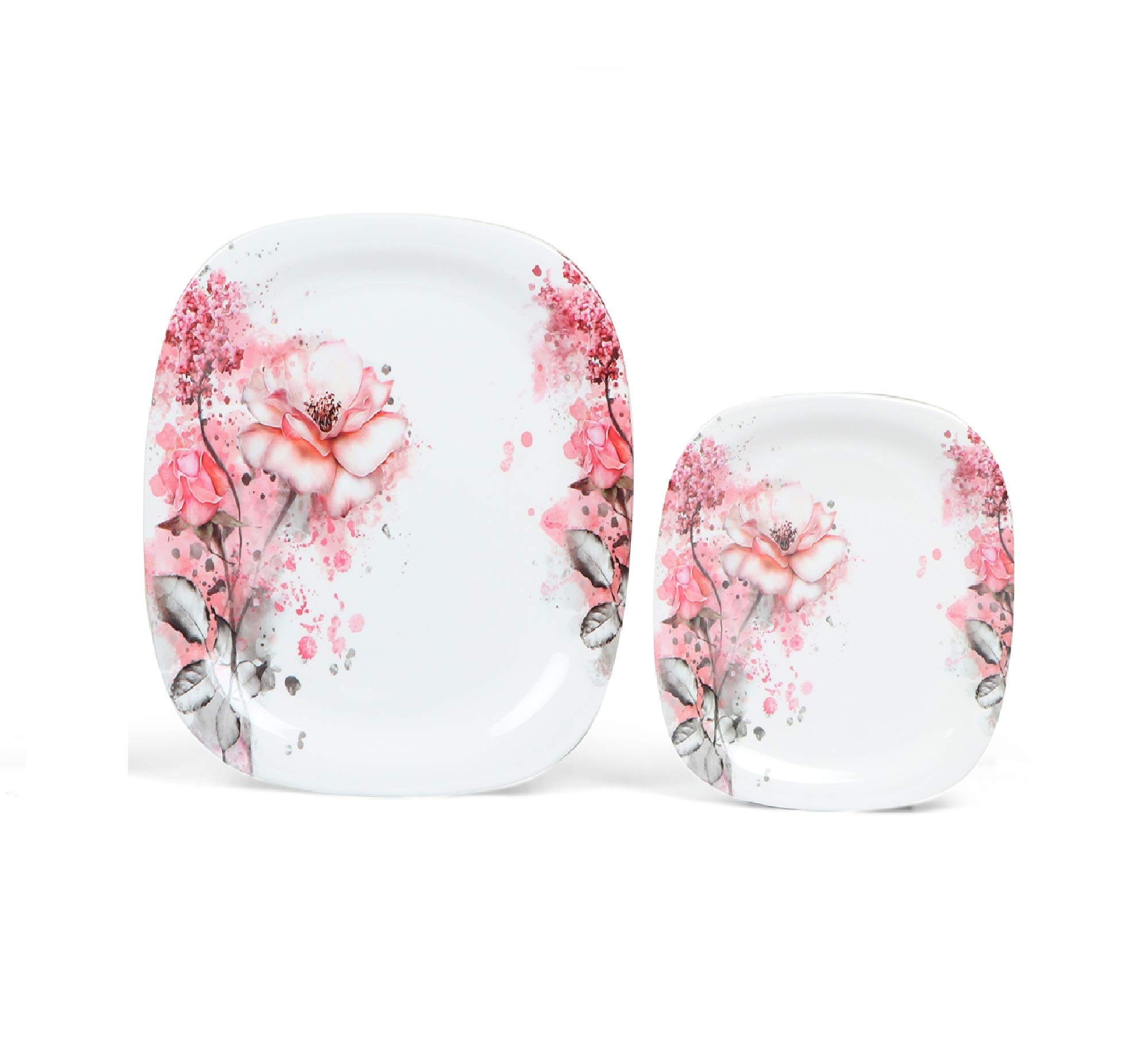 HomeKitchenDining setsDinnerware SetsGolden Fish White Base Floral Printed Melamine Full Size Square Dinner Plate(11 Inch), Veg. Bowl & Quarter Plates(7 Inch) Mini Dining Set (Set of 18)