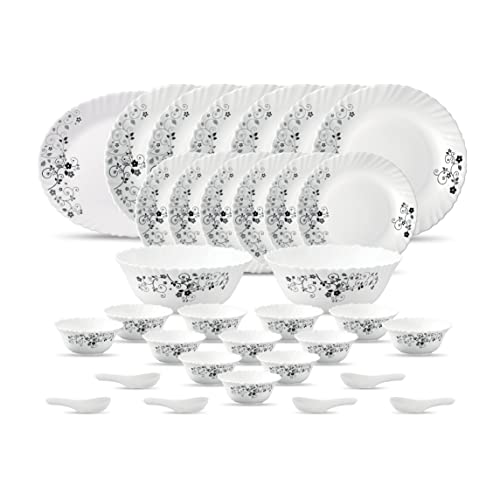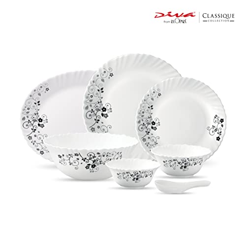 La Opala LaOpala Diva Classique Collection Opal Glass Dinner Set (33 Pcs Mystrio Black White)
