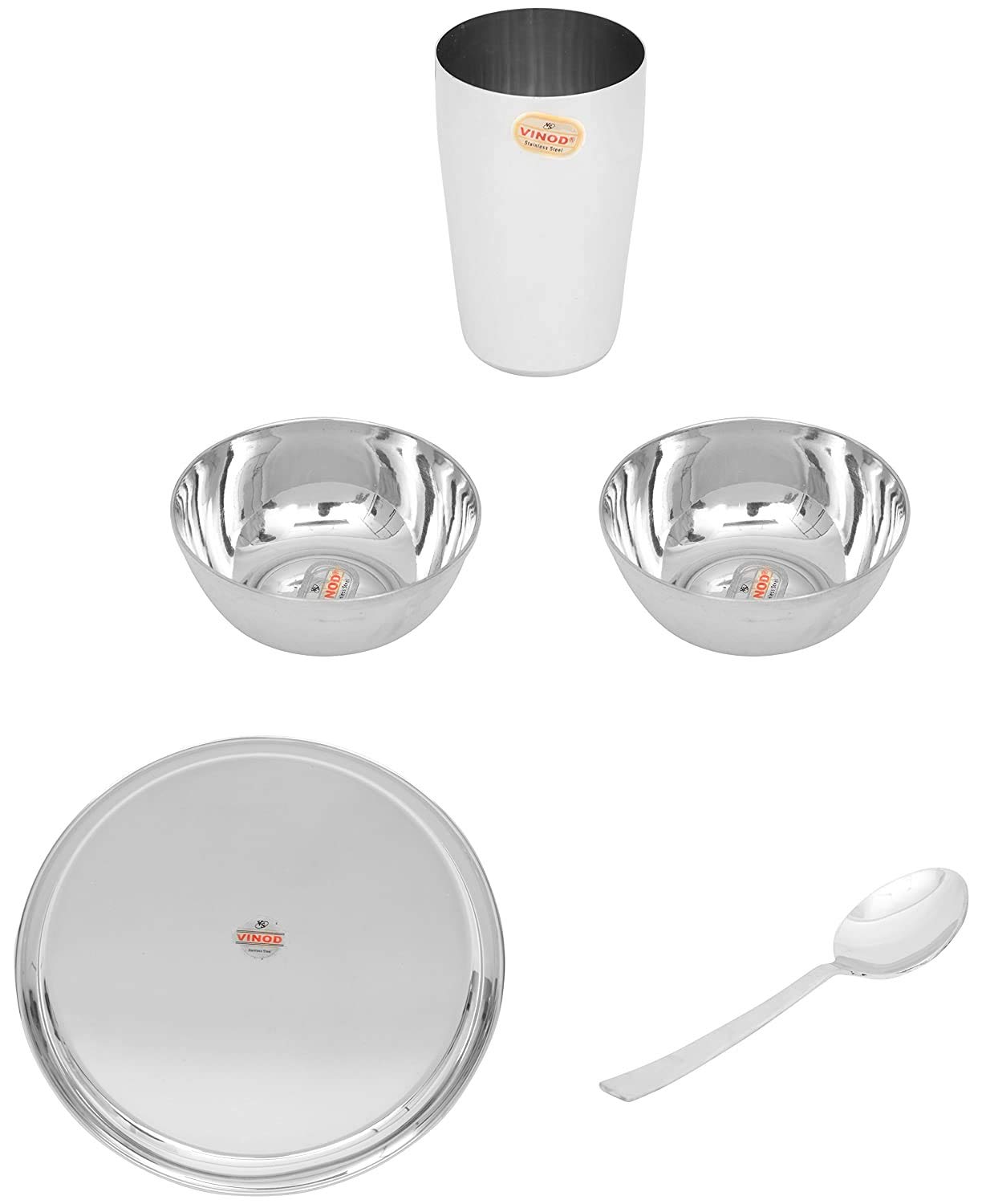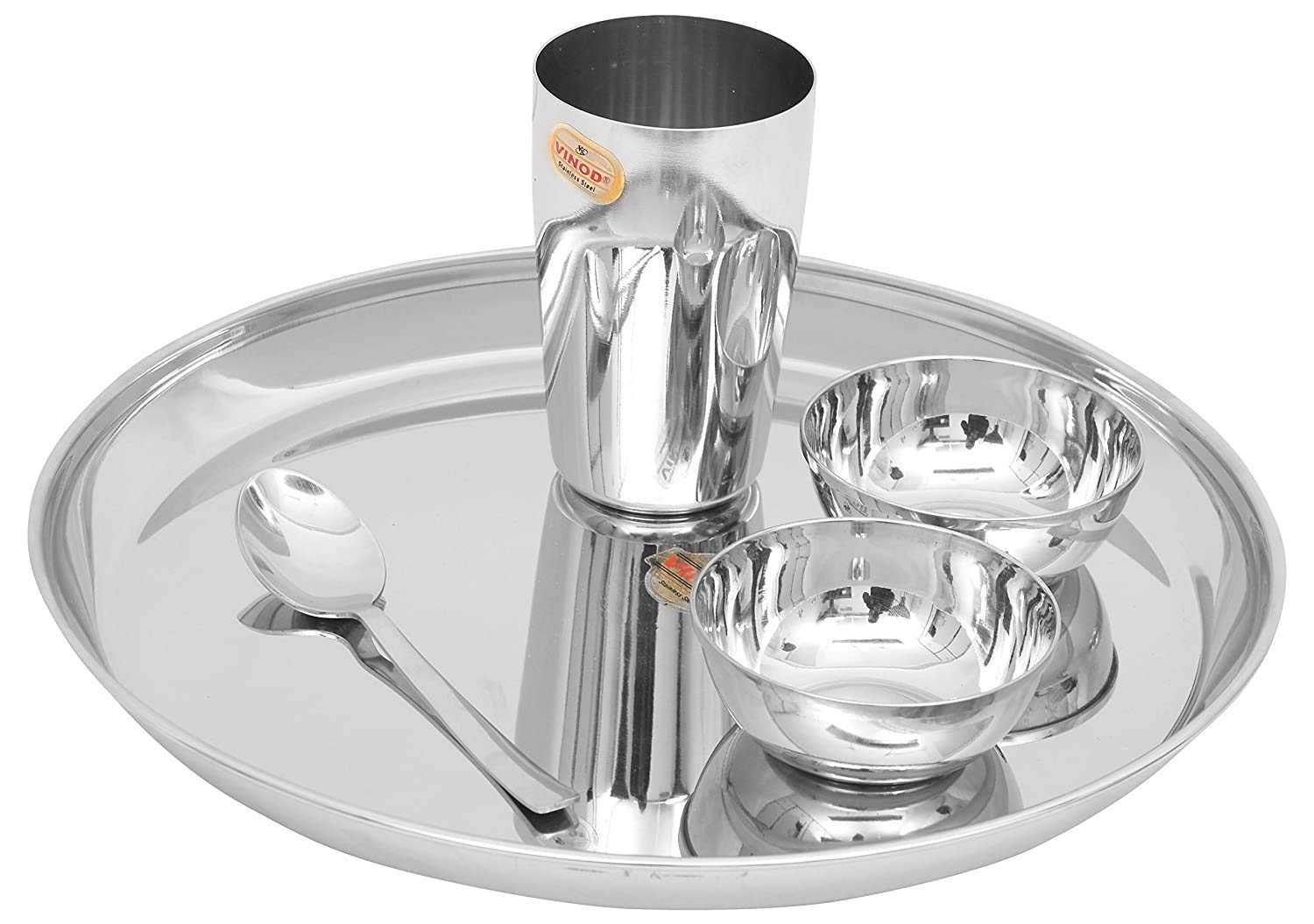 Vinod Stainless Steel 20 pcs Thali Set/Dinner Set/Bhojan Set of Dinner Plate, Katori Bowl, Glass, Spoon (Assembled Dinnerware) kh13