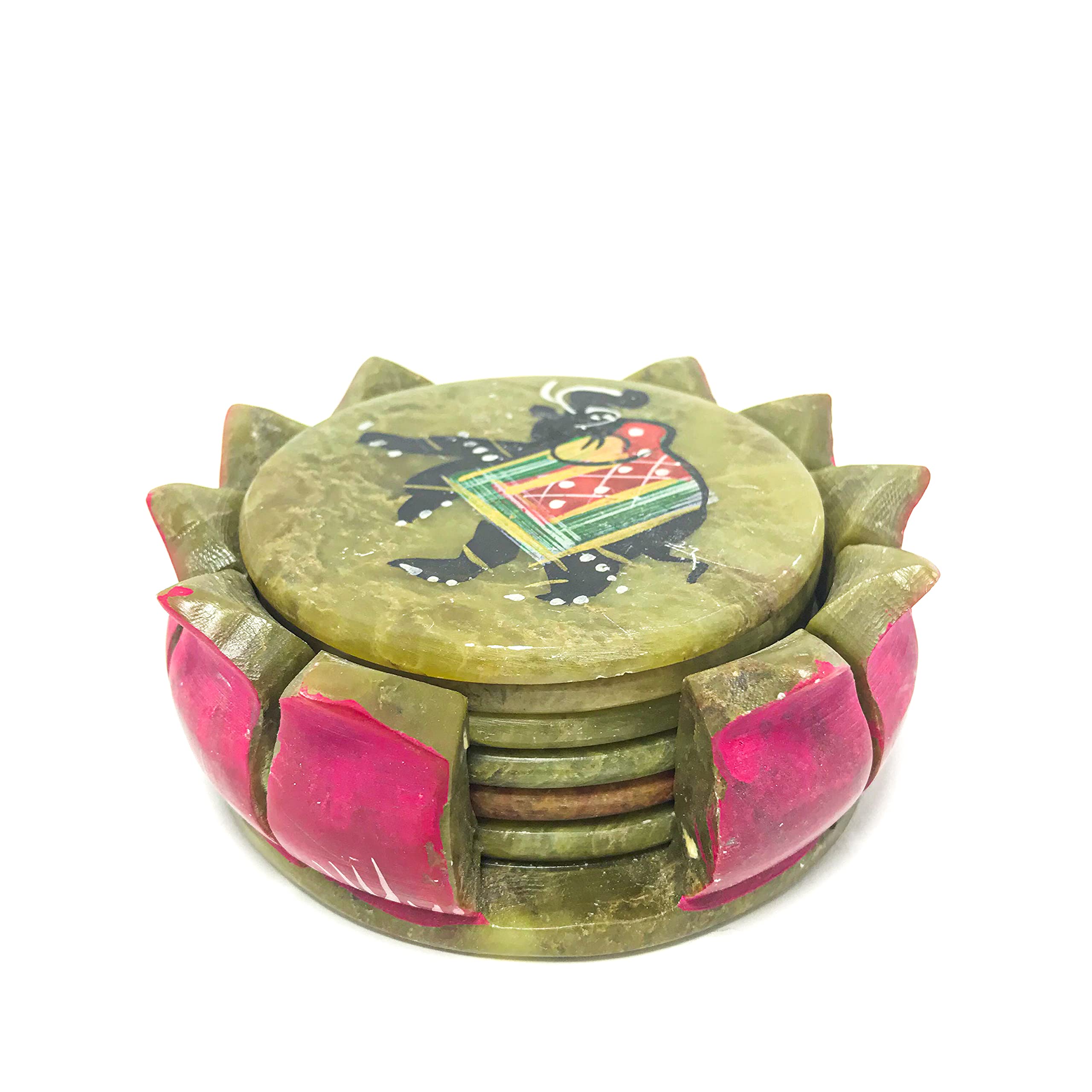 AGRA SOFT STONE CARVING PRODUCTS Marble Floral Design Coasters for Tea/Coffee/Cocktail etc (Set o 6)